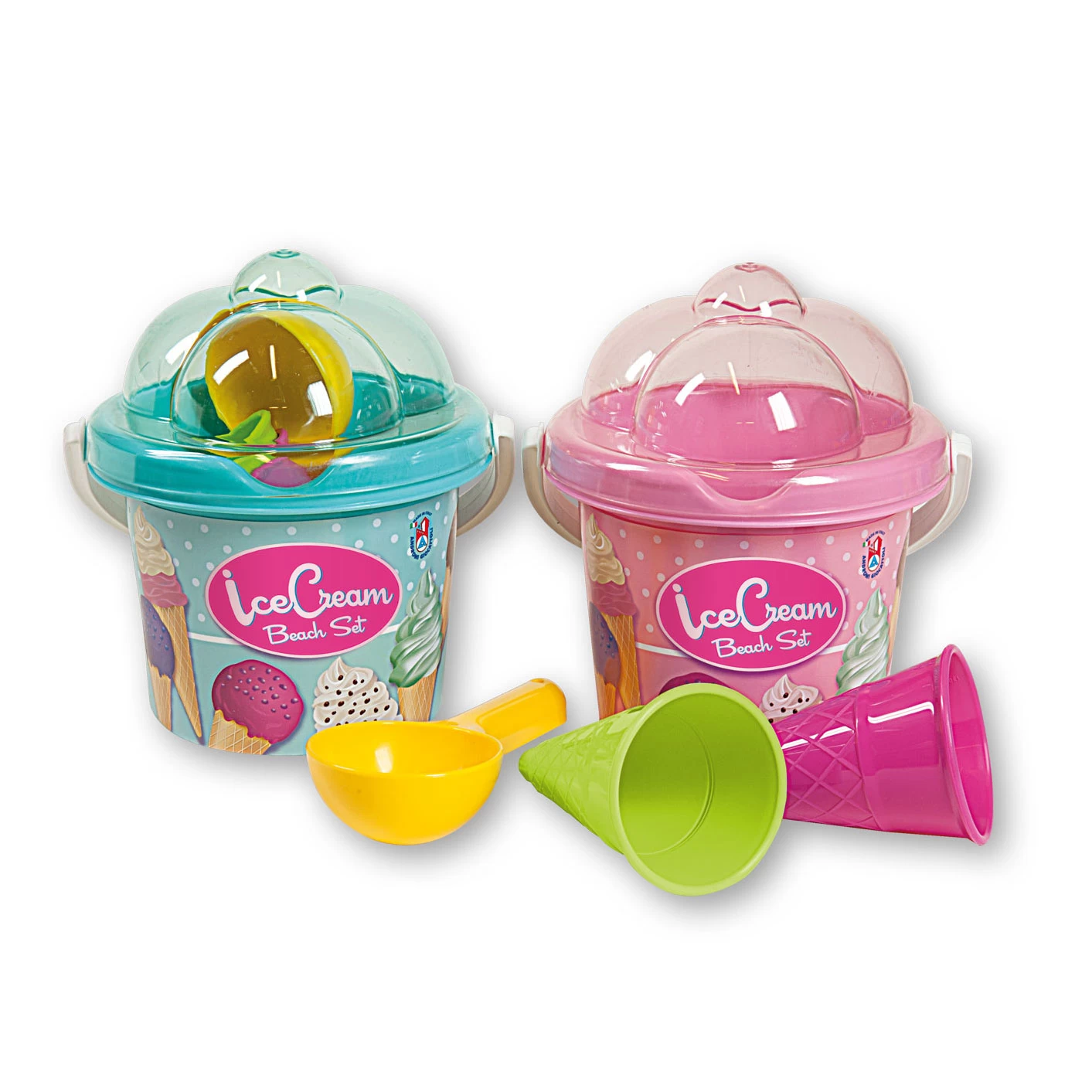 Emmerset ijsje bestaande uit een emmer, 2 ijs hoorntjes en een ijsschep.