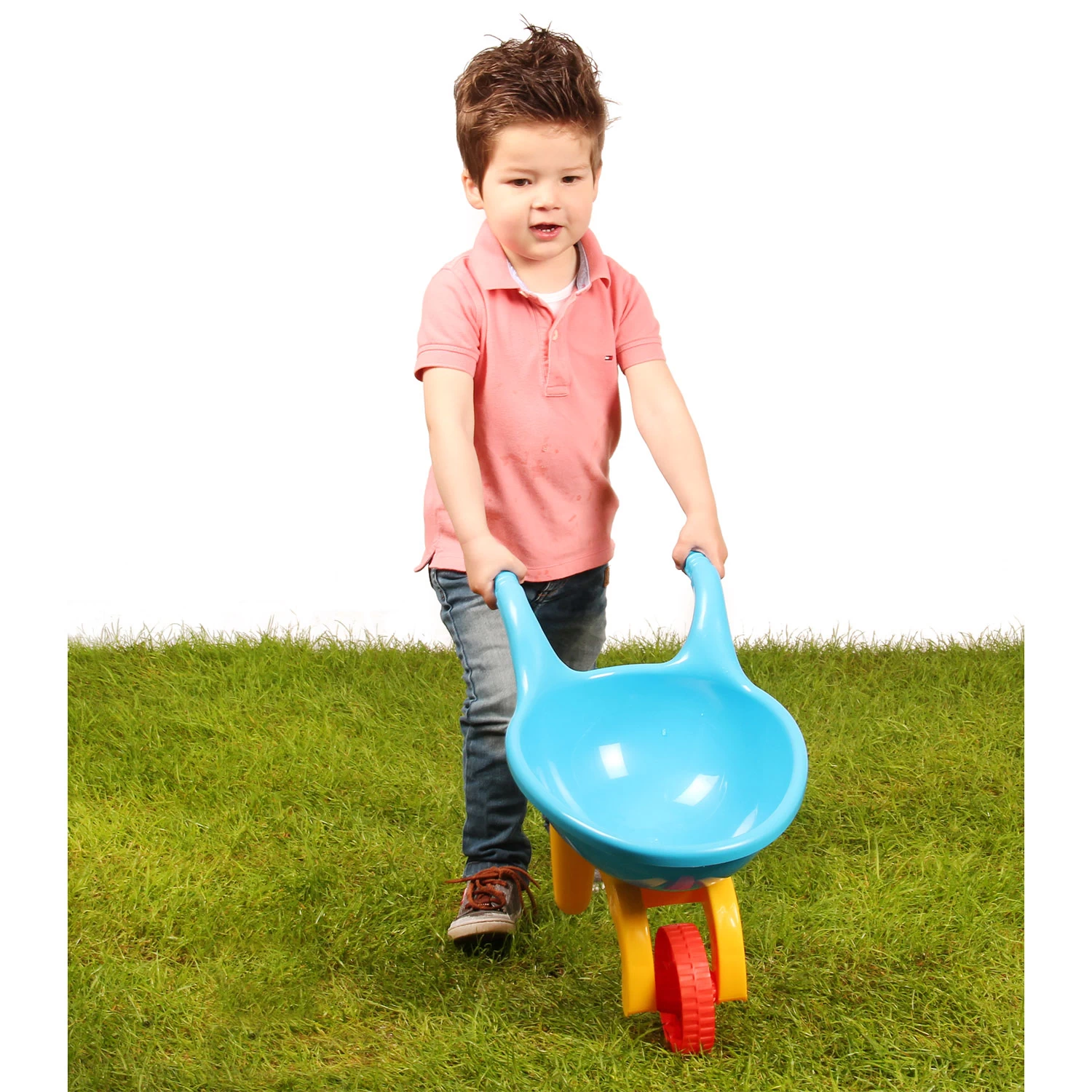 De Androni speelgoed kruiwagen heeft een lengte van 51cm en is uitgevoerd in frisse kleuren. Met deze kruiwagen kun je van alles vervoeren; zand, stenen of andere materialen. Laad de kruiwagen maar vol! De kruiwagen is gemaakt van kunststof.