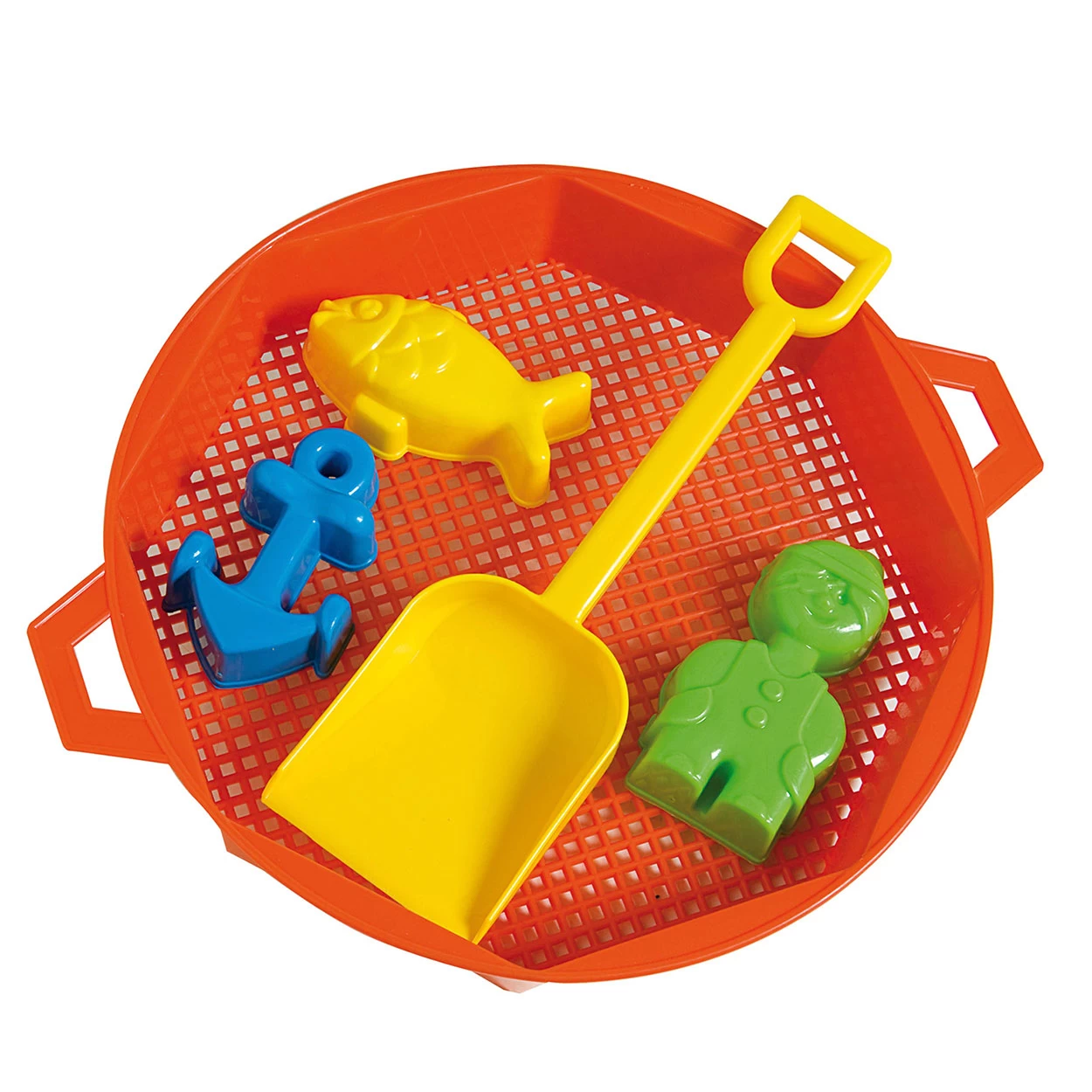 Zandbak zeef, inclusief 3 zandvormpjes en een schep.