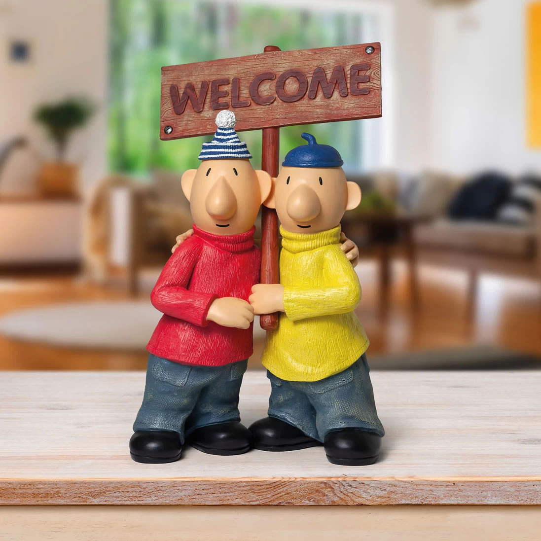 Welkom! Plaats het Buurman & Buurman Tuinbeeld – Duo voor je deur en geef iedereen een welkom gevoel! Of geef dit kwalitatieve, duurzame beeld cadeau aan een echte Buurman & Buurman fan of aan een goede buur? Het Buurman & Buurman Tuinbeeld is 44 centimeter hoog en zowel geschikt voor buiten als binnen.