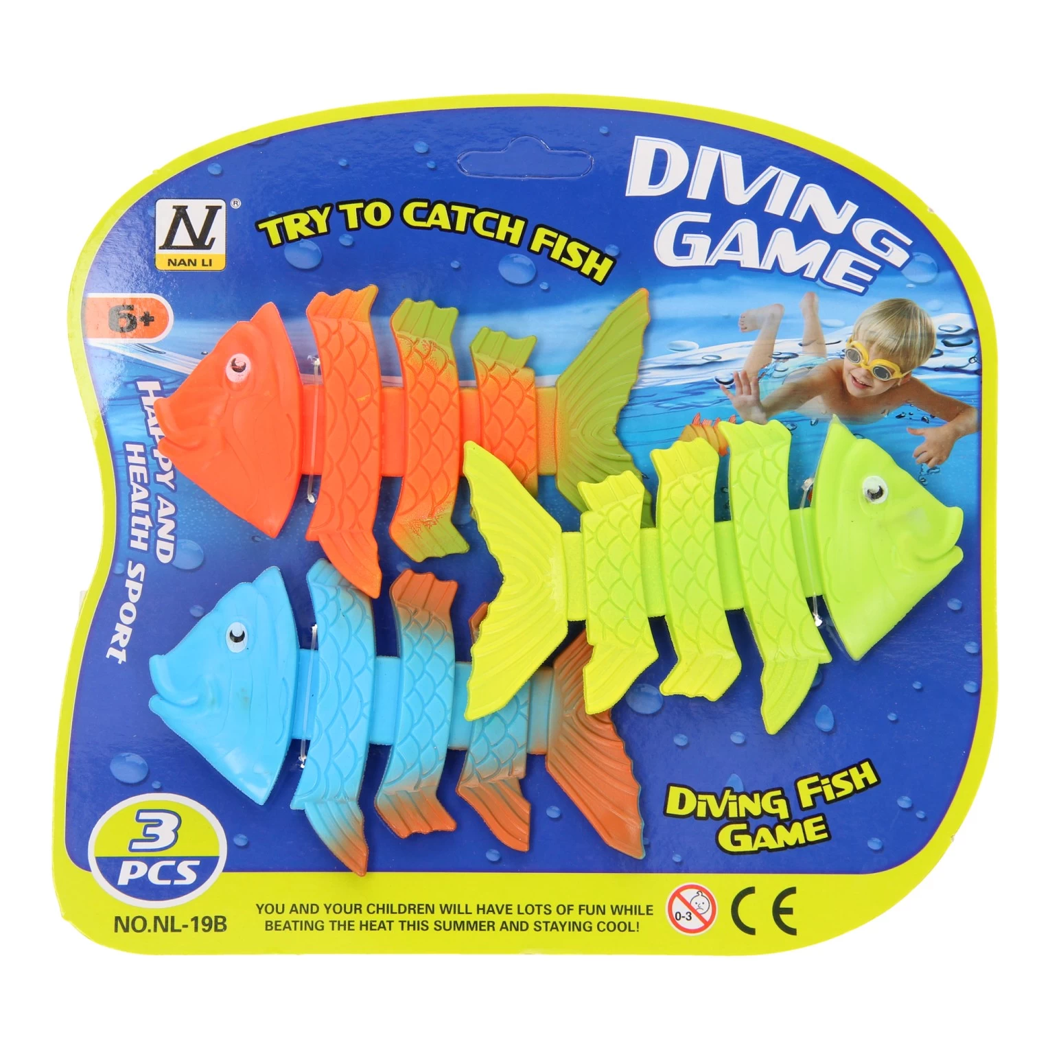 Oefen je duikkunsten en duik de duikvissen op uit het zwembad! De vissen zijn aan de voorkant verzwaard zodat ze naar de bodem zinken. De set bestaat uit 3 duikvissen met een lengte van 11 cm. Geschikt voor kinderen vanaf 6 jaar.