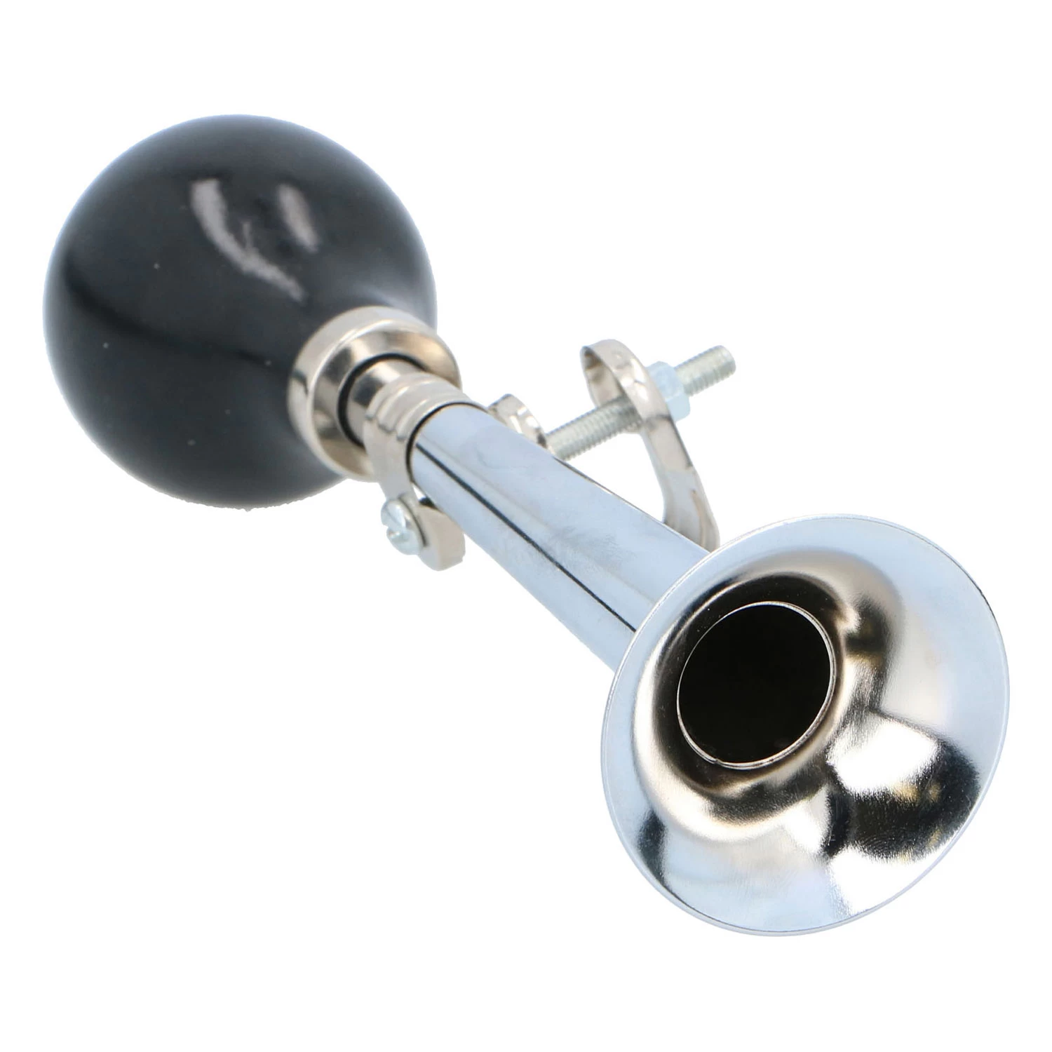 Knijp in het rubberen balletje van deze retro-look fietshoorn en iedereen hoort dat je eraan komt! De hoorn is 21 centimeter lang. Geschikt voor standaard-fietssturen.