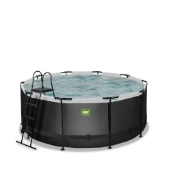 Het EXIT Black Leather zwembad ø360 x 122 cm is een rond frame zwembad met een zwarte leren print. Het zwembad is standaard voorzien van een filterpomp en een zwembadtrap, waarmee je veilig het zwembad in en uit kunt stappen. Het EXIT Black Leather zwembad heeft een luxe uitstraling dankzij het unieke leerpatroon. Door de zwarte buitenkant en lichtgrijze binnenkant staat er een stijlvol en modern zwembad in de tuin. Het EXIT zwembad is uitgevoerd met sterke 3-laags wanden, van PVC en polyester.