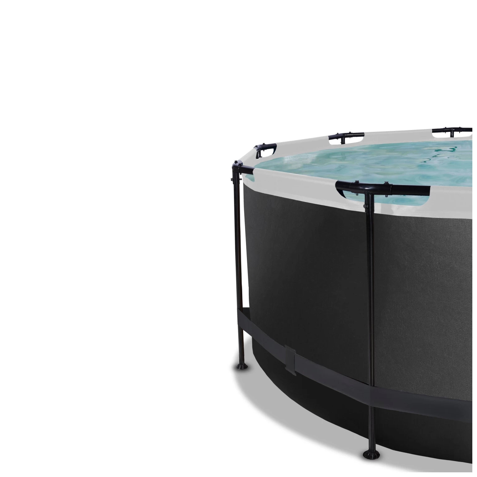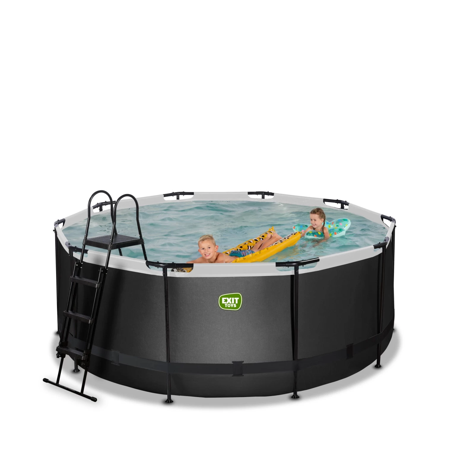 Het EXIT Black Leather zwembad ø360 x 122 cm is een rond frame zwembad met een zwarte leren print. Het zwembad is standaard voorzien van een zandfilterpomp en een zwembadtrap, waarmee je veilig het zwembad in en uit kunt stappen. Het EXIT Black Leather zwembad heeft een luxe uitstraling dankzij het unieke leerpatroon. Door de zwarte buitenkant en lichtgrijze binnenkant staat er een stijlvol en modern zwembad in de tuin. Het EXIT zwembad is uitgevoerd met sterke 3-laags wanden, van PVC en polyester.