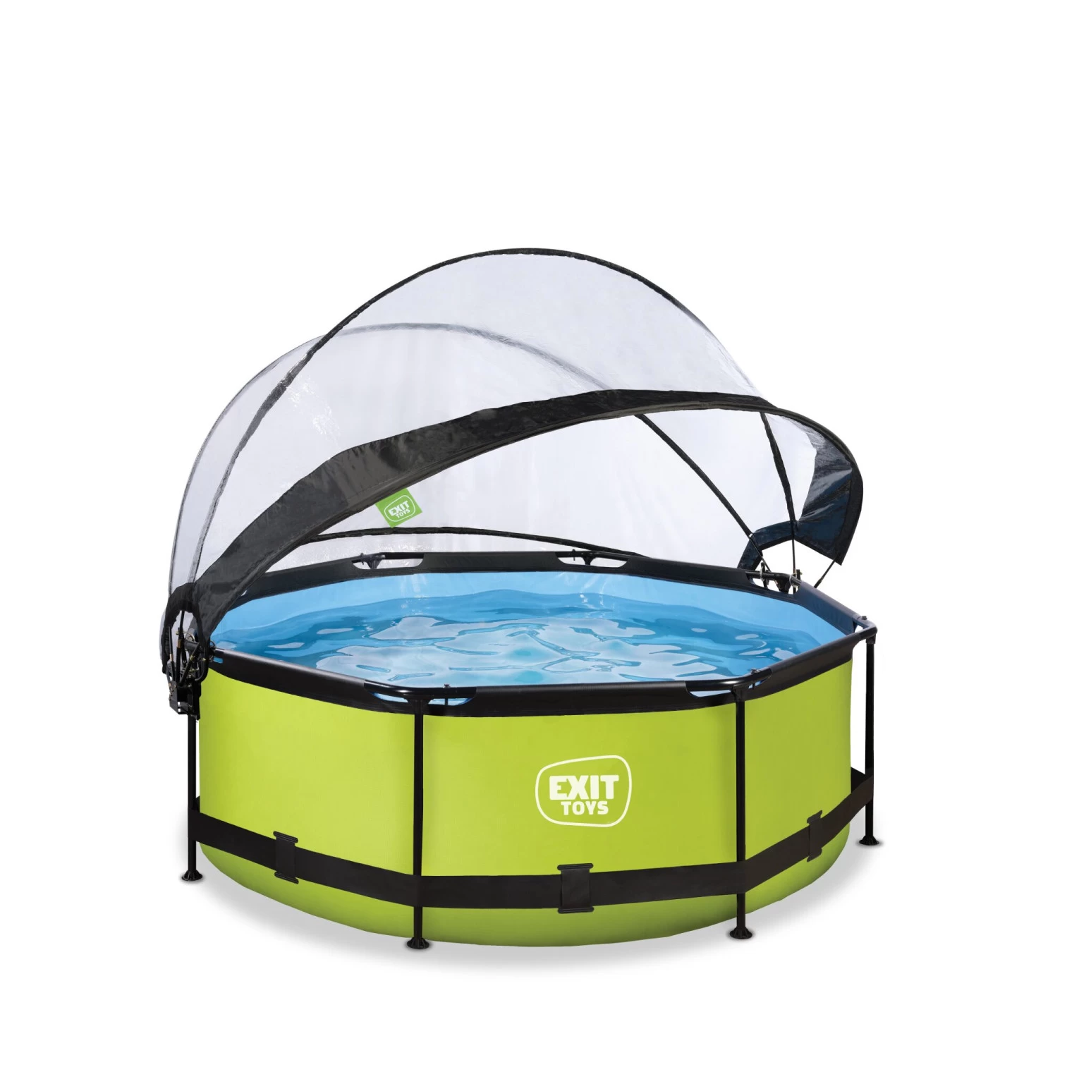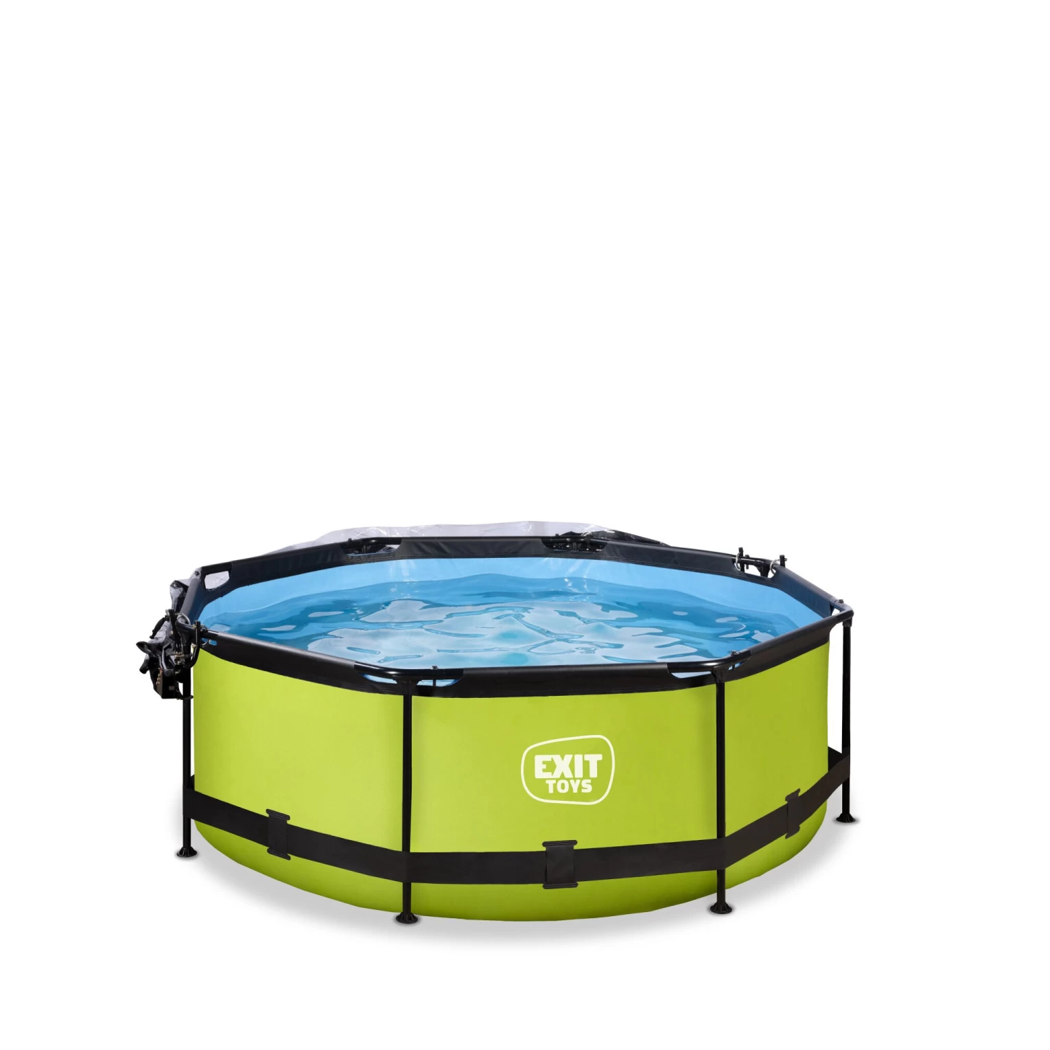 Het EXIT Lime zwembad ø244x76cm is een rond, groenkleurig frame zwembad met overkapping. Het compacte zwembad is standaard voorzien van een filterpomp en valt op tussen andere zwembaden door zijn frisse limoengroene kleur. Ontdek hoe stevig een rond opzetzwembad kan zijn: het gepoedercoate stalen frame en de sterke poten van het EXIT Lime zwembad zorgen ervoor dat het bad altijd stabiel staat en jarenlang meegaat. De meegeleverde filterpomp houdt het water schoon en in beweging zodat vervuiling van het water wordt tegengegaan.
