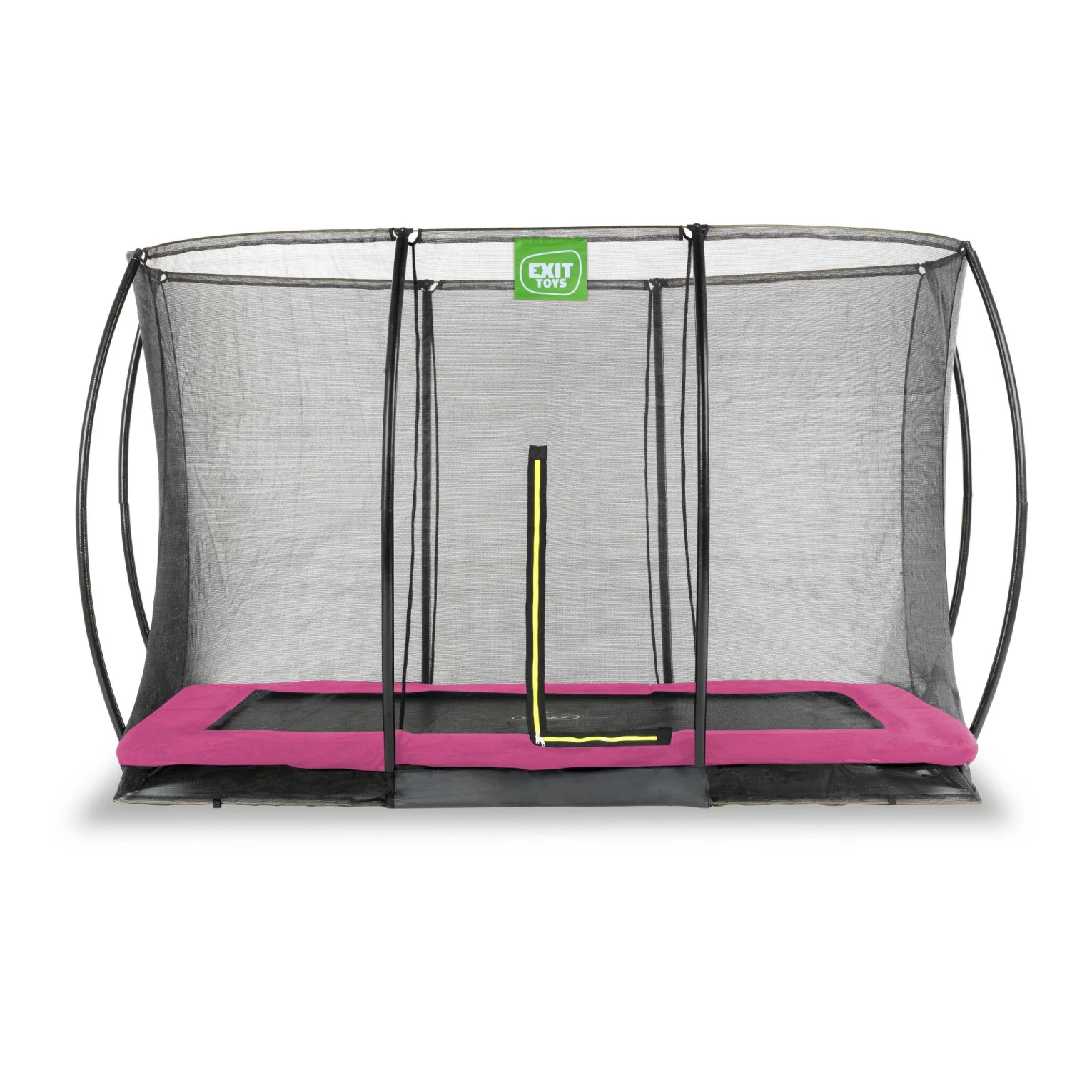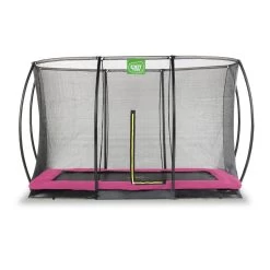 De EXIT Silhouette inground trampoline is een rechthoekige trampoline. Het veiligheidsnet, dat wordt meegeleverd met deze trampoline, is voorzien van gebogen staanders zodat het net strakgespannen staat. De hoogwaardige beschermrand dekt de gegalvaniseerde veren volledig af en is voorzien van een speciaal ontwikkeld voetbeschermingssysteem, zodat je voet niet tussen de veren kan komen. De stevige veren staan garant voor goede sprongkracht. Het frame van de Silhouette trampoline is gegalvaniseerd en gepoedercoat zodat roest geen kans maakt. Op de rechthoekige EXIT Silhouette trampolines beleef je eindeloos veel springplezier!