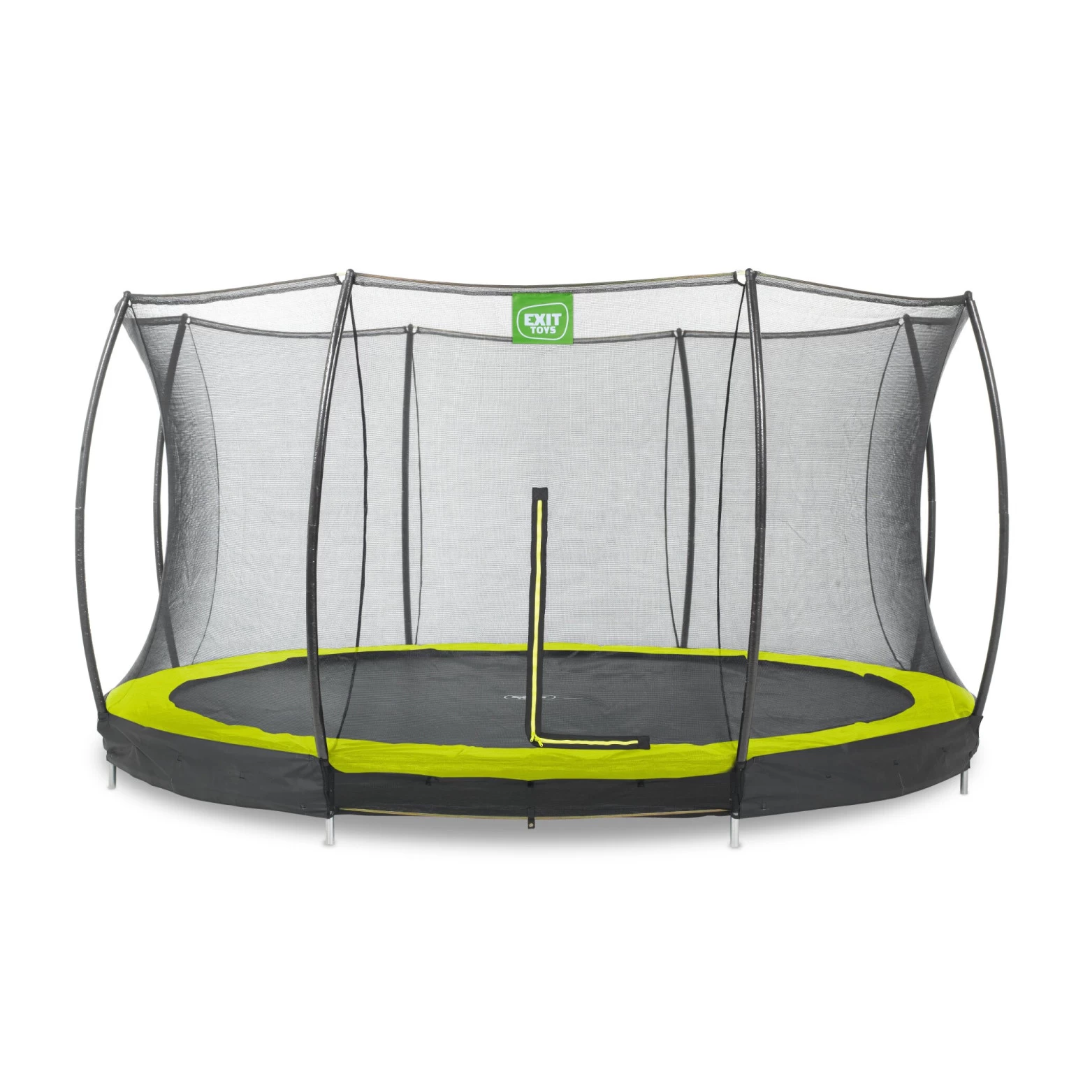 De EXIT Silhouette inground trampoline met veiligheidsnet is een ronde trampoline van goede kwaliteit. Voor deze trampoline graaf je een komvormige kuil in de grond waar de trampoline in wordt gezet voor een mooi en veilig resultaat. Het veiligheidsnet, dat standaard wordt meegeleverd bij deze trampoline, is voorzien van gebogen staanders zodat het net strakgespannen staat.