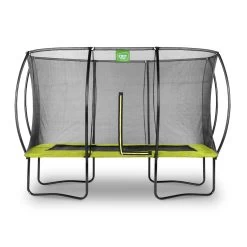 De EXIT Silhouette trampoline op poten is een rechthoekige trampoline. Het veiligheidsnet, dat standaard wordt meegeleverd met de trampoline op poten, is voorzien van gebogen staanders zodat het net strakgespannen staat. De hoogwaardige beschermrand dekt de gegalvaniseerde veren volledig af en is voorzien van een speciaal ontwikkeld voetbeschermingssysteem, zodat je voet niet tussen de veren kan komen. De stevige veren staan garant voor goede sprongkracht. Het frame van de Silhouette trampoline is gegalvaniseerd en gepoedercoat zodat roest geen kans maakt. Op de rechthoekige EXIT Silhouette trampolines beleef je eindeloos veel springplezier!
