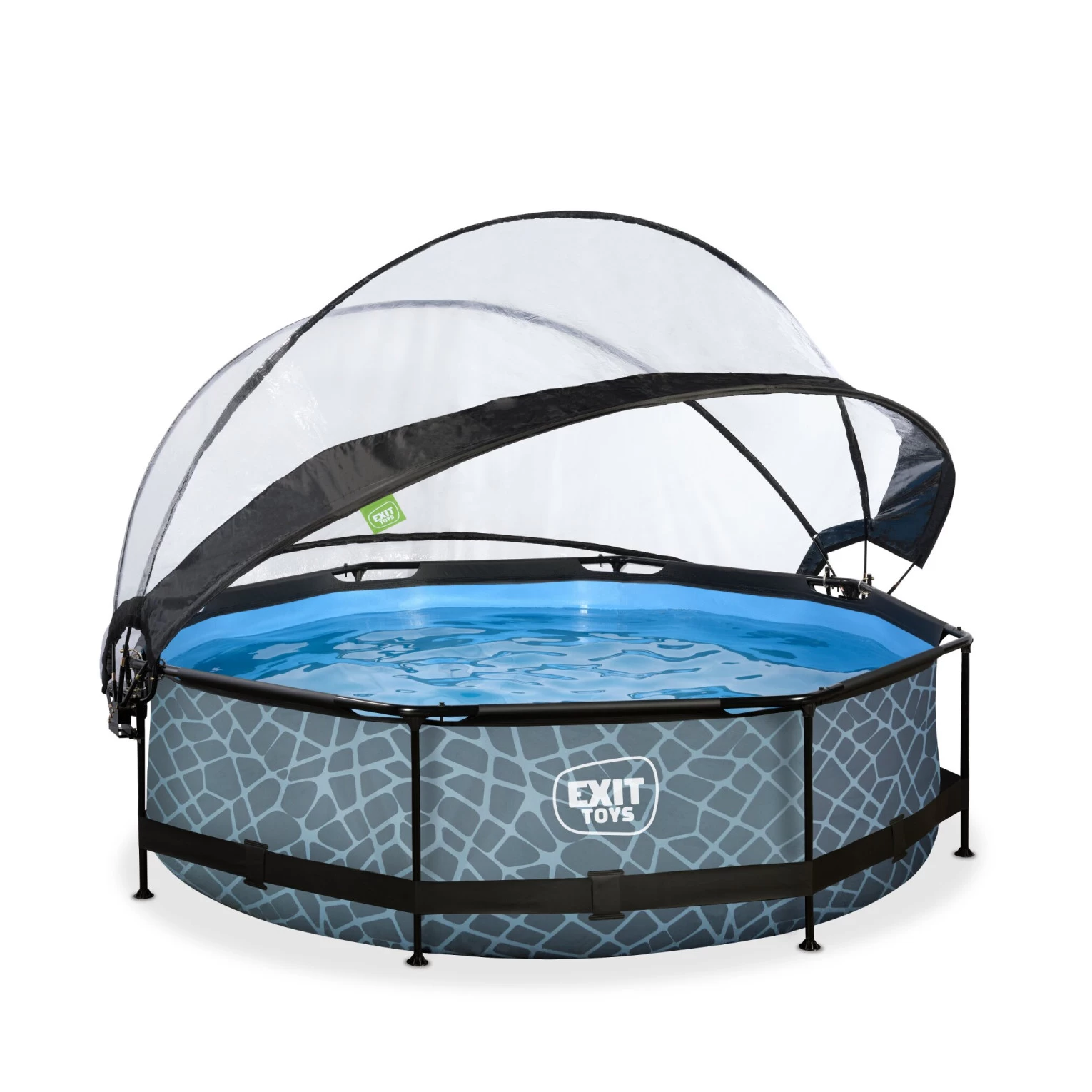 Het EXIT Stone zwembad ø300x76cm is een rond grijskleurig frame zwembad met overkapping. Het zwembad is standaard voorzien van een filterpomp en valt op tussen andere zwembaden door zijn stoere steenpatroon.