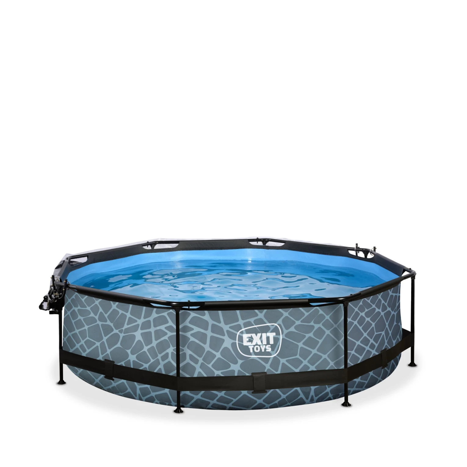 Ontdek hoe stevig een rond opzetzwembad kan zijn: het gepoedercoate stalen frame en de sterke poten van het EXIT Stone zwembad zorgen ervoor dat het bad altijd stabiel staat en jarenlang meegaat. De meegeleverde filterpomp houdt het water schoon en in beweging zodat vervuiling van het water wordt tegengegaan. De filterpomp kan eenvoudig aan het zwembad worden gemonteerd en door middel van filtercartridges wordt het water ververst.