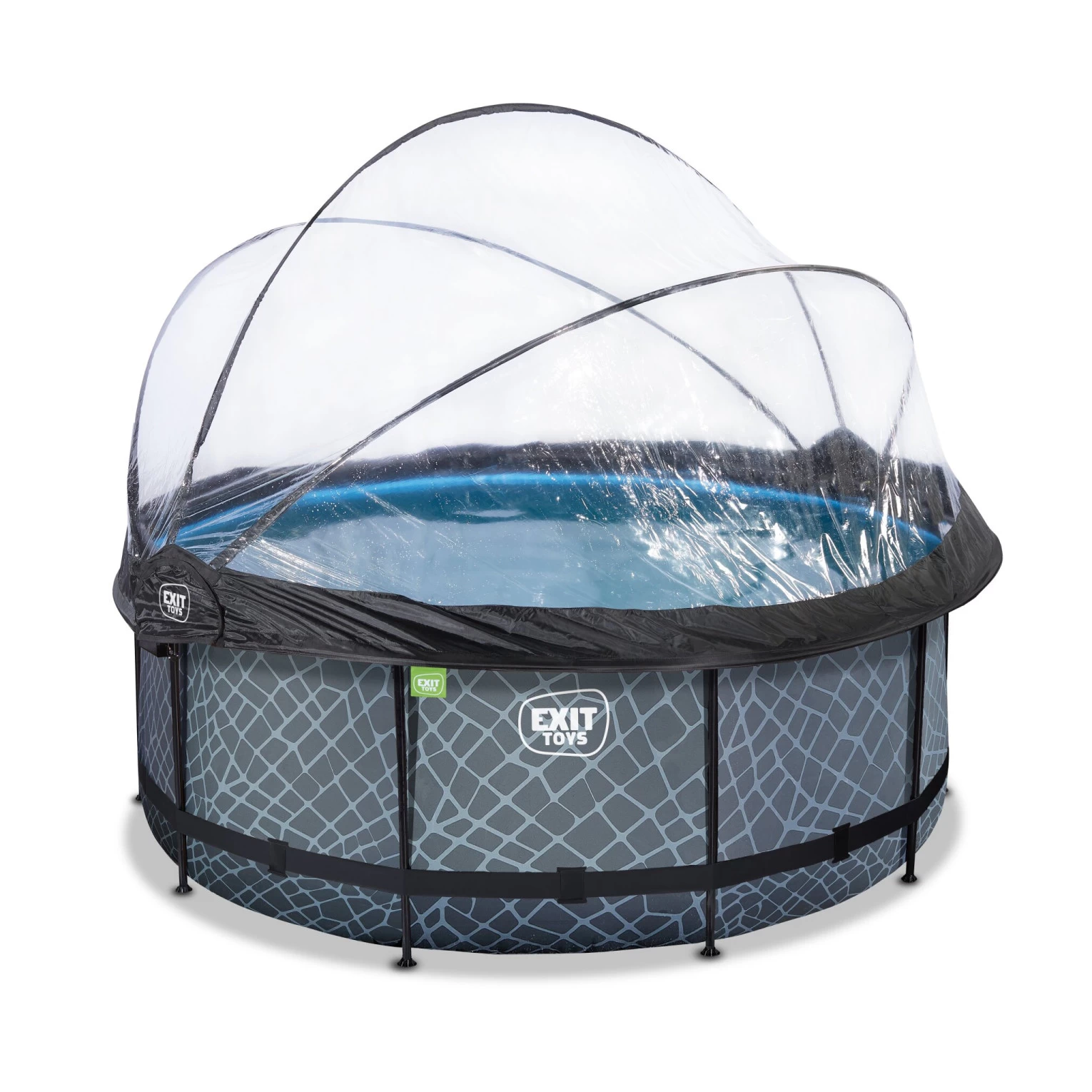 Het EXIT Stone zwembad ø360 x 122 cm is een rond grijskleurig frame zwembad met overkapping. Het zwembad is standaard voorzien van een zandfilterpomp en een zwembadtrap, waarmee je veilig het zwembad in en uit kunt stappen. Het frame zwembad biedt genoeg ruimte om heerlijk op een luchtbed te dobberen. En wil je toch liever onder water zwemmen? Het EXIT Stone zwembad is maar liefst 122 centimeter diep waardoor je echt onder water kunt duiken.