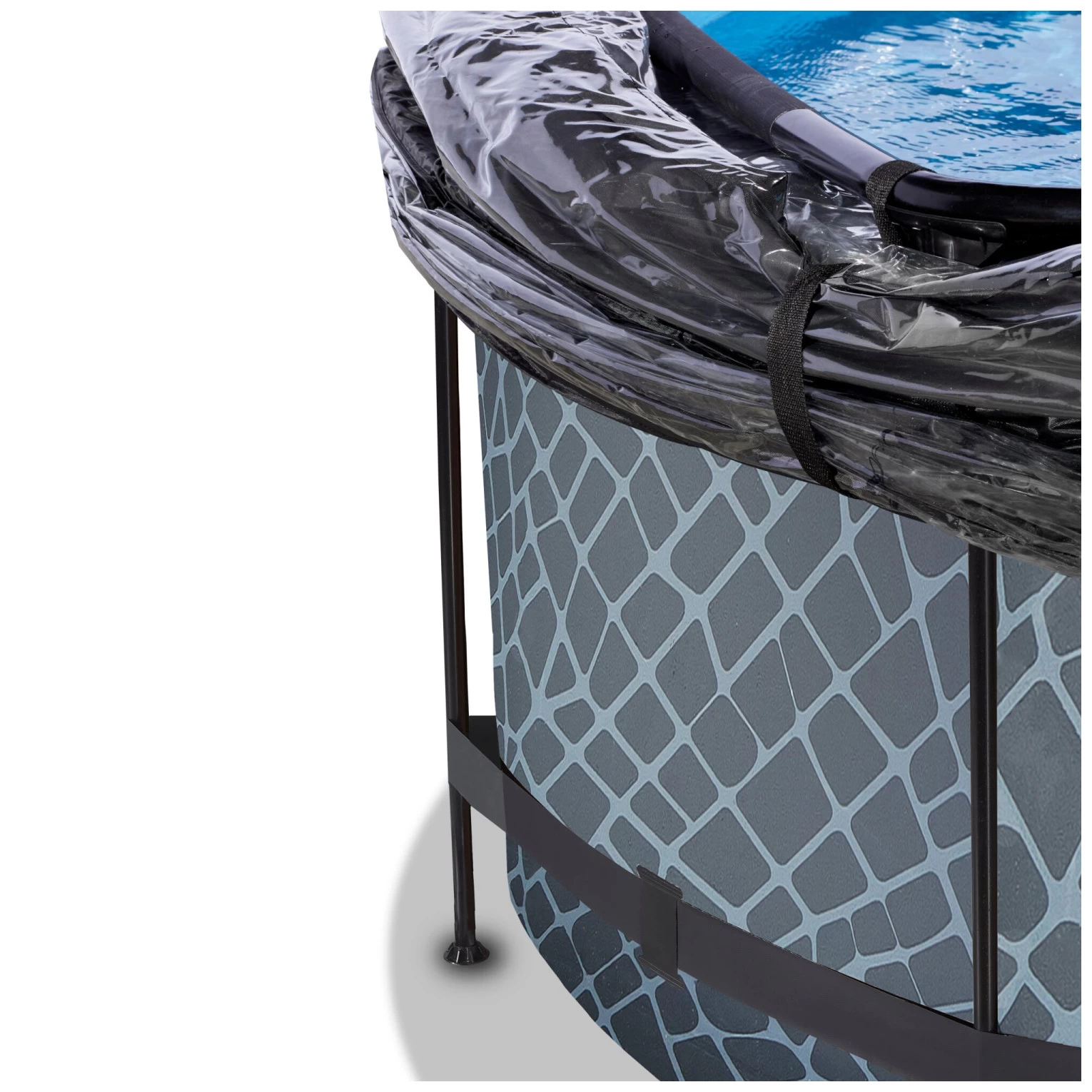 Ontdek hoe stevig een rond opzetzwembad kan zijn: het gepoedercoate stalen frame en de sterke poten van het EXIT Stone zwembad zorgen ervoor dat het bad altijd stabiel staat en jarenlang meegaat. En het meegeleverde watercirculatiesysteem maakt dit zwembad helemaal af. De hoogwaardige zandfilterpomp reinigt de kleinste deeltjes uit het zwembad door het water krachtig door het filterbed heen te pompen. Dit zorgt ervoor dat vuil, zoals zand, ongedierte of algen achter blijven in het filter.