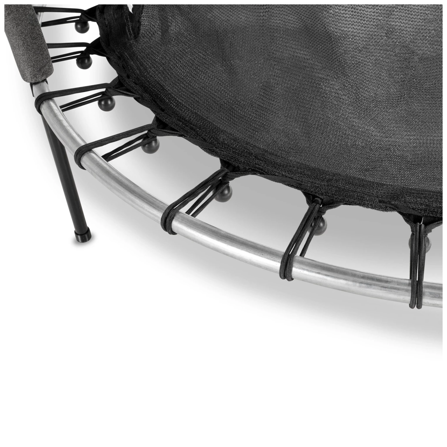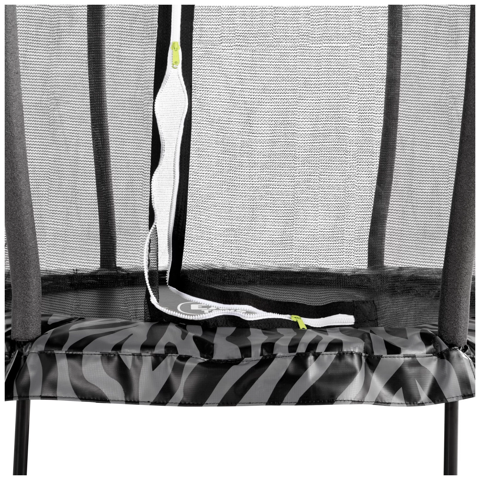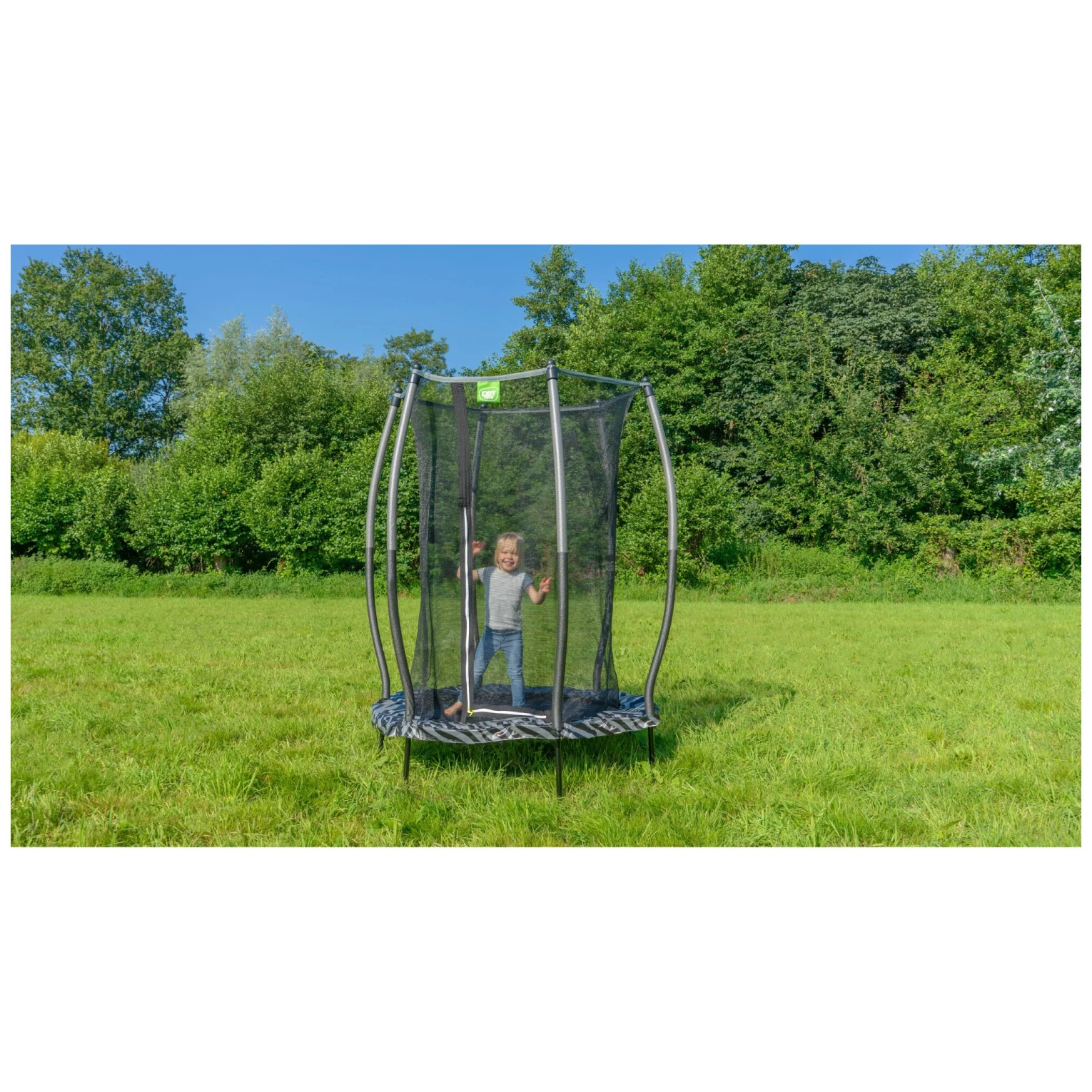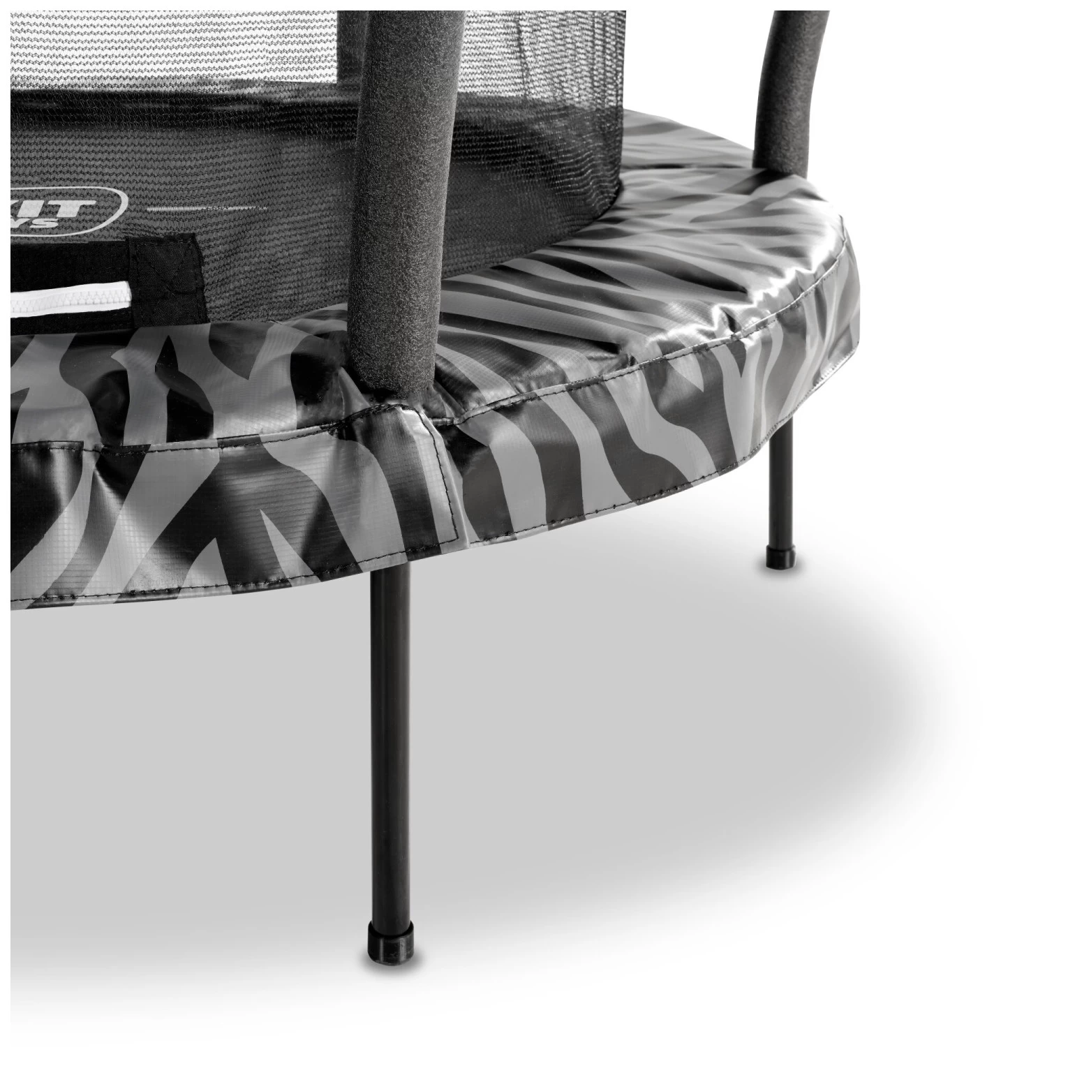 De EXIT Tiggy junior trampoline is een mini trampoline voor kinderen van drie tot vijf jaar. Deze compacte ronde trampoline met veiligheidsnet heeft een beschermrand met stoere tijgerprint en een lage opstap, zodat peuters en kleuters de trampoline eenvoudig kunnen betreden. Anders dan bij grotere trampolines heeft deze trampoline elastieken in plaats van springveren. De elastieken geven een soepele bounce en zachte landing, waardoor het lichaam nauwelijks wordt belast en jonge kinderen met plezier én vol trots hun eerste sprongen laten zien. En is er per ongeluk toch een missprong? Dan vangt het meegeleverde veiligheidsnet je kind op. Het veiligheidsnet zit aan de springmat bevestigd en kinderen kunnen dus nooit met hun voeten en handen tussen de elastieken komen. De Tiggy junior trampoline van EXIT Toys is eenvoudig op te bouwen, omdat er geen schroeven nodig zijn. Een bijkomend voordeel van de EXIT Tiggy junior is dat hij door de compacte vorm ook geschikt is voor binnen. Als het minder mooi weer is, kun je de trampoline dus gewoon naar binnen verplaatsen.