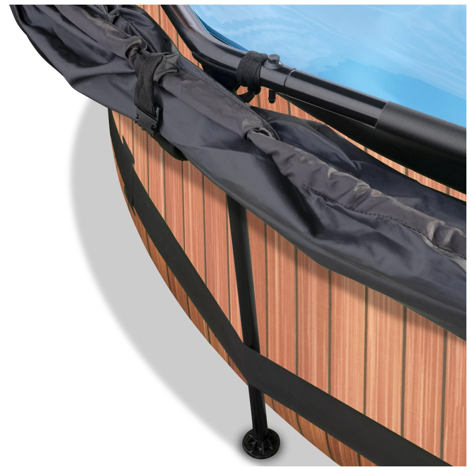 Het EXIT Wood zwembad ø300x76cm is een rond frame zwembad met houtlook. Het zwembad is standaard voorzien van een filterpomp en schaduwdoek, die je op zomerdagen beschermt tegen de zon. Ontdek hoe stevig een rond opzetzwembad kan zijn: het gepoedercoate stalen frame en de sterke poten van het EXIT Wood zwembad zorgen ervoor dat het bad altijd stabiel staat en jarenlang meegaat. De meegeleverde filterpomp houdt het water schoon en in beweging zodat vervuiling van het water wordt tegengegaan.