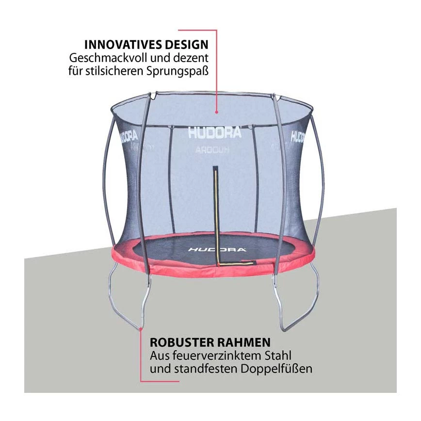 Bij deze tuintrampoline zegt de naam het al. Het innovatieve ontwerp is gewoonweg fantastisch. Smaakvol en discreet, het creëert de perfecte sfeer voor stijlvol springplezier zonder in te boeten aan functionaliteit. De speciale constructie van het veiligheidshek is dubbel overtuigend. De grote afstand tot de palen vergroot de veiligheid en dankzij het centrale net is het springoppervlak zeer ruim. De slijtvaste springmat van hoogwaardige stof, gefixeerd in 48 veren, garandeert een zeer goede sprongversnelling. De extra brede en dikke randafdekking van zeildoek is scheurvast en versterkt met nylon. De stabiele dubbele poten zorgen altijd voor een veilige stand.De trampoline heeft een maximaal draagvermogen van 100 kg. Aantal veren: 48, Dikte framekussen ca. 2,5 centimeter. Hoogte (met net): 3,4 meter en doorsnede is 250 centimeter.