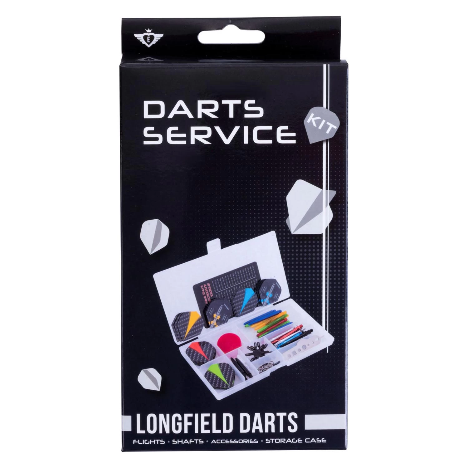 Dankzij het handige doosje kun je alles na het darten weer netjes opbergen.