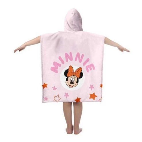 Heerlijk zachte poncho voor katoen om je kind mee te drogen na het zwemmen of douchen. De poncho is 60 x 120 centimeter groot (one size) en heeft een capuchon. Zo worden ook meteen de haren droog, terwijl je kind geen koude oren krijgt. Handig! De poncho is lichtroze en heeft een vrolijke afbeelding van Minnie Mouse. Geschikt voor in de wasmachine.