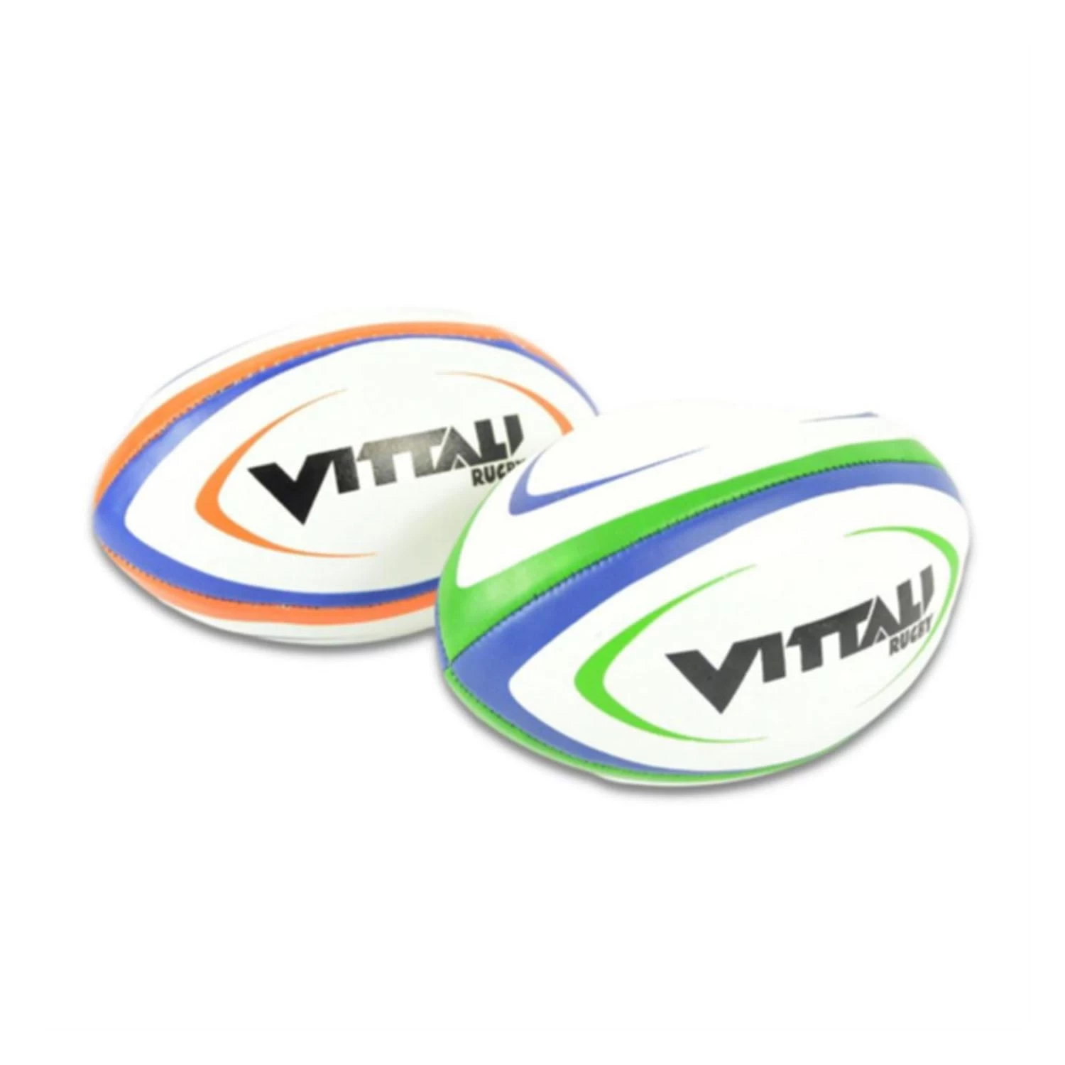 Rugbybal van 26 centimeter groot en gemaakt van imitatieleer.