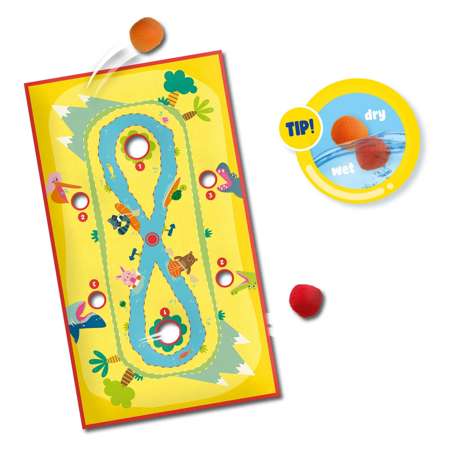 Dit grote speeldoek kun jij samen met twee of vier kinderen spelen. Probeer zo goed mogelijk alle bal(len) op het doek te houden en volg de routes! Zorg ervoor dat de twee water splash ballen niet door de gaten heen glippen. Gaat jou het lukken alles in balans te houden?