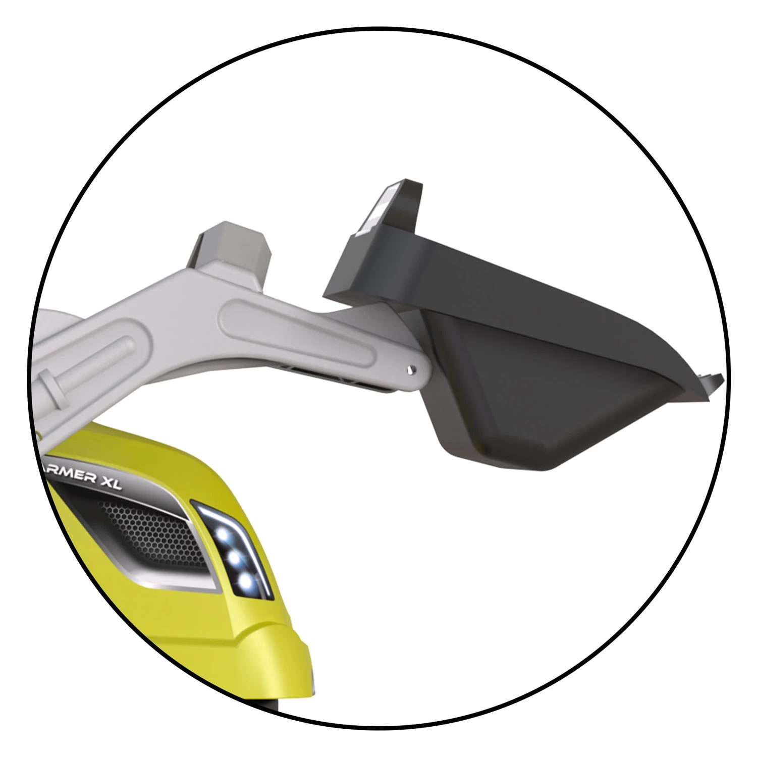 Vergeet niet om je te laten horen met de claxon geïntegreerd in het stuur! De trekker heeft een laadbak voorop die je met de hand kunt besturen. Hiermee kan je alles wat je onderweg tegenkomt opscheppen en meenemen. De motorkap van de trekker kan open. Heb je een kleine storing? Open de motorkap van je tractor om hem te repareren! Je zal hele dagen plezier beleven aan jouw nieuwe geel met zwarte tractor!