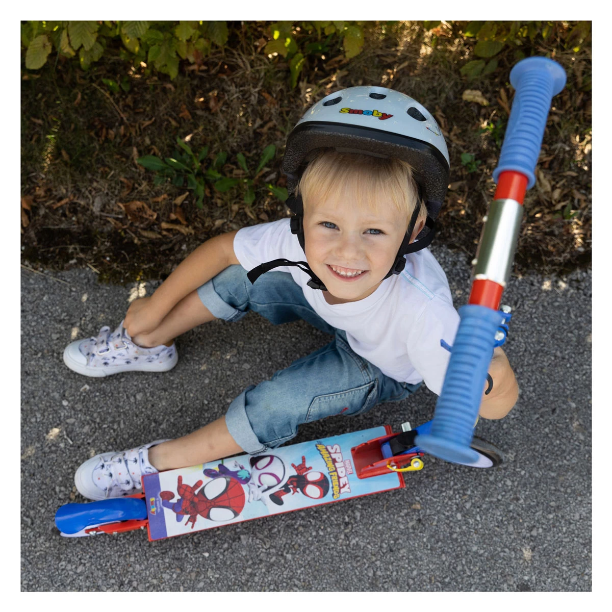Je kind kan op avontuur met de opvouwbare step met 2 wielen in de kleuren van Spidey!