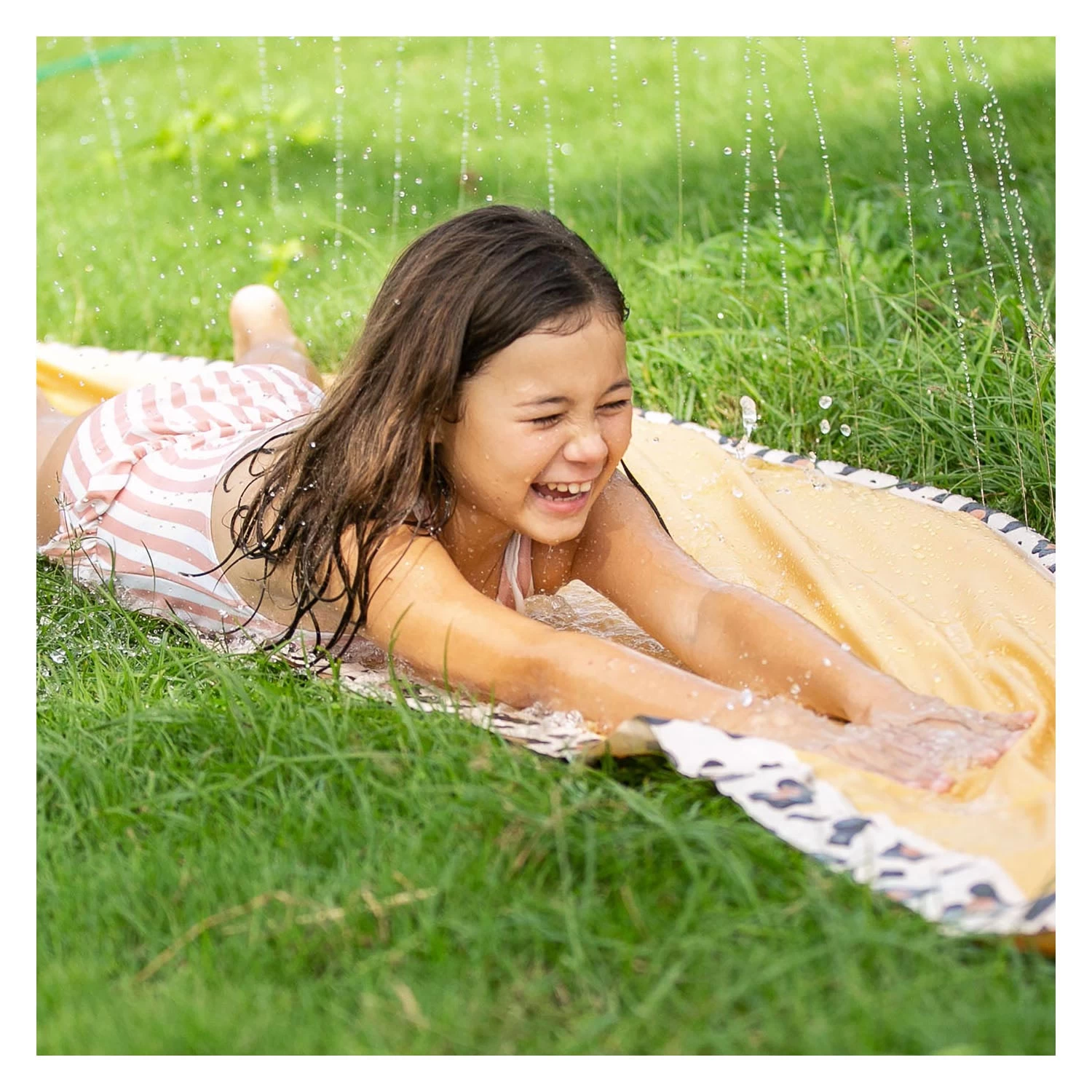 Met deze gave waterglijbaan van Swim Essentials glij jij zo de zomer in! Het opvallende beige panterprint ontwerp zorgt voor een unieke uitstraling die niemand anders in zijn tuin heeft. De waterglijbaan wordt besproeid met water door middel van het aansluiten van een normale tuinslang op de beschikbare koppeling. Je kids beleven zo urenlang plezier, en misschien doe jij als ouder zelfs ook een keertje mee! De waterglijbaan is 5,5 meter lang en is geschikt voor 1 persoon tegelijk. Het is aan te raden om de waterglijbaan op een zachte ondergrond te gebruiken zodat je een pijnlijke landing voorkomt. Beleef de zomer van je leven met de Beige Panterprint Waterglijbaan van Swim Essentials!