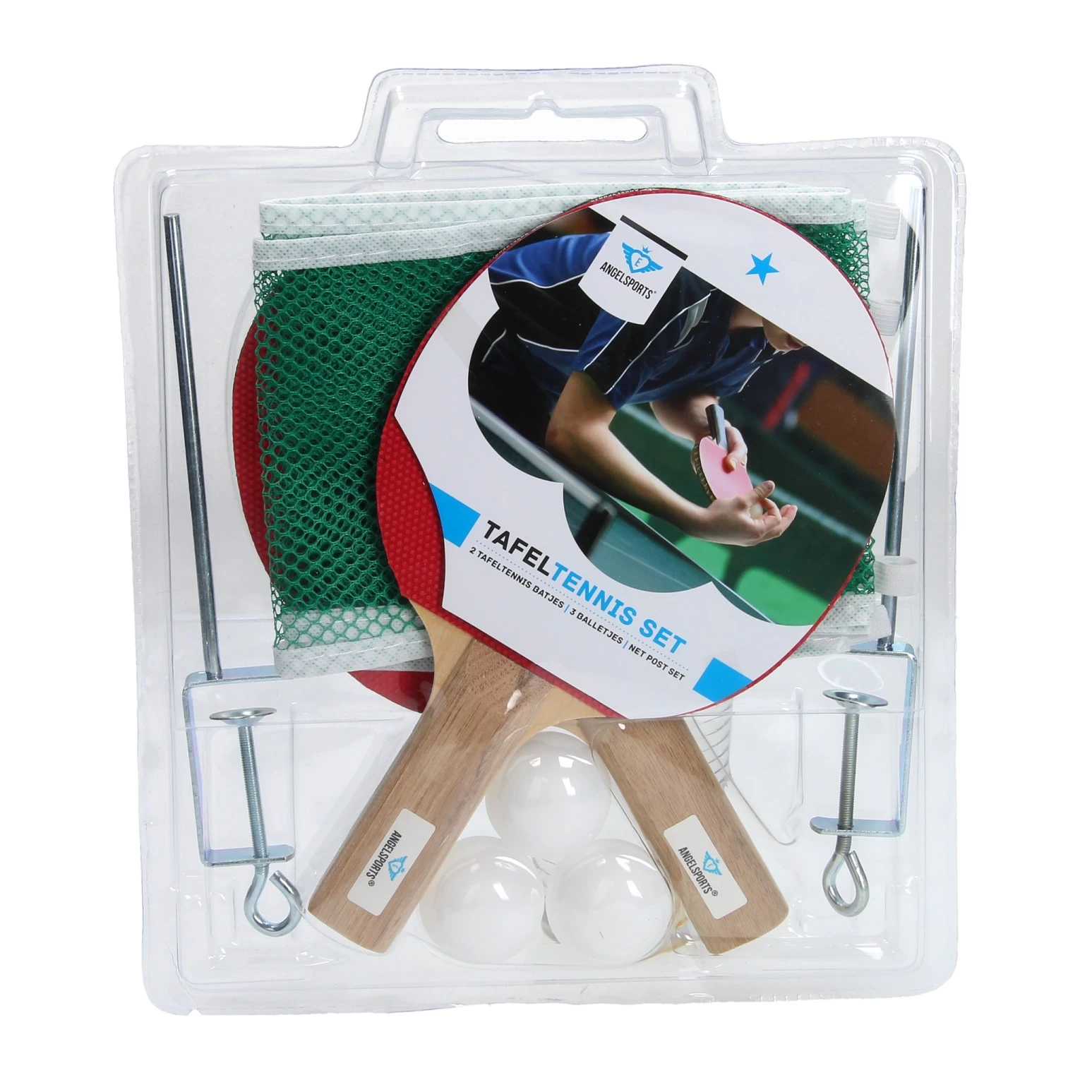 Zorg voor leuk en leerzaam vermaak met deze tafeltennisset met net. Deze set is speciaal voor beginners in tafeltennis, train je behendigheid als nooit tevoren! Je kan het net op verschillende tafels bevestigen, zorg wel dat het oppervlak groot genoeg is. In deze set: net met metalen tafelhouders, 3 balletjes, 2 pingpong batjes.