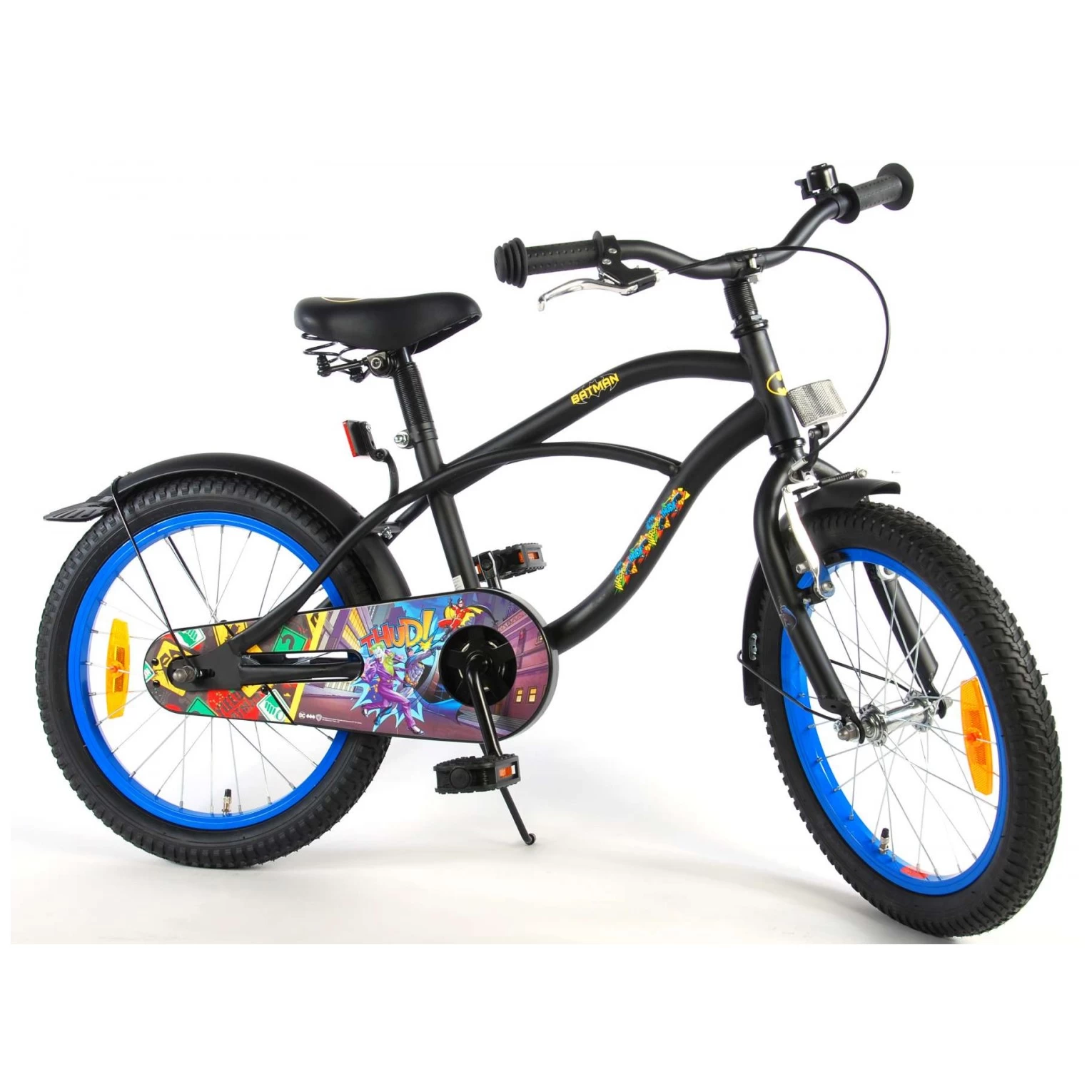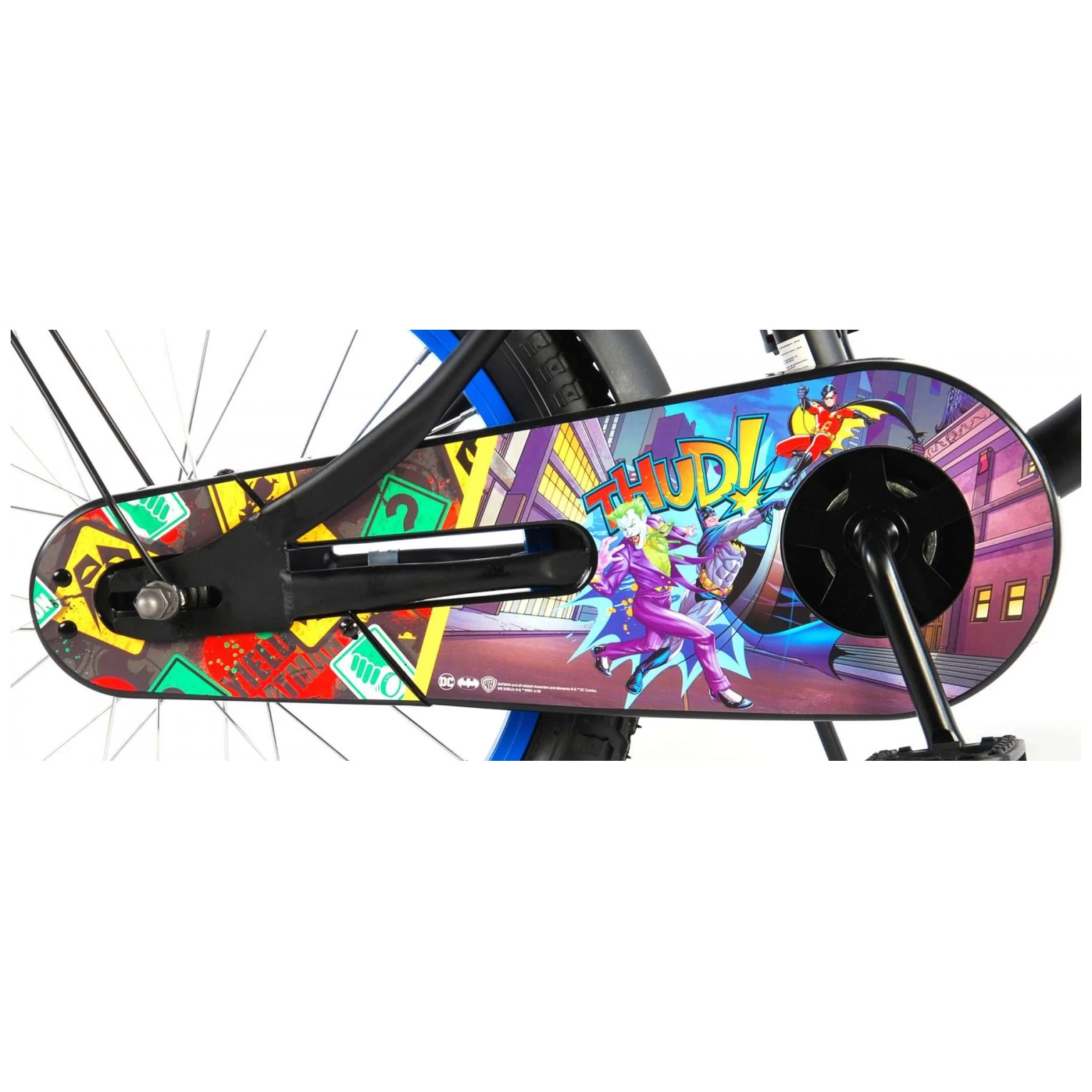 Deze kinderfiets Batman 18 inch jongensfiets is 85% afgemonteerd. Speciaal voor alle fans van deze superheld heeft Volare een fiets ontworpen in de stijl van Batman. De fiets heeft een stoer zwart frame met Batmanstickers. De kettingkast is volledig gesloten en heeft bovendien ook een stoere print. Om snel te kunnen leren fietsen heeft de fiets zijwieltjes. Verder heeft de fiets een fietsbel en zowel een hand- als een terugtraprem.Â