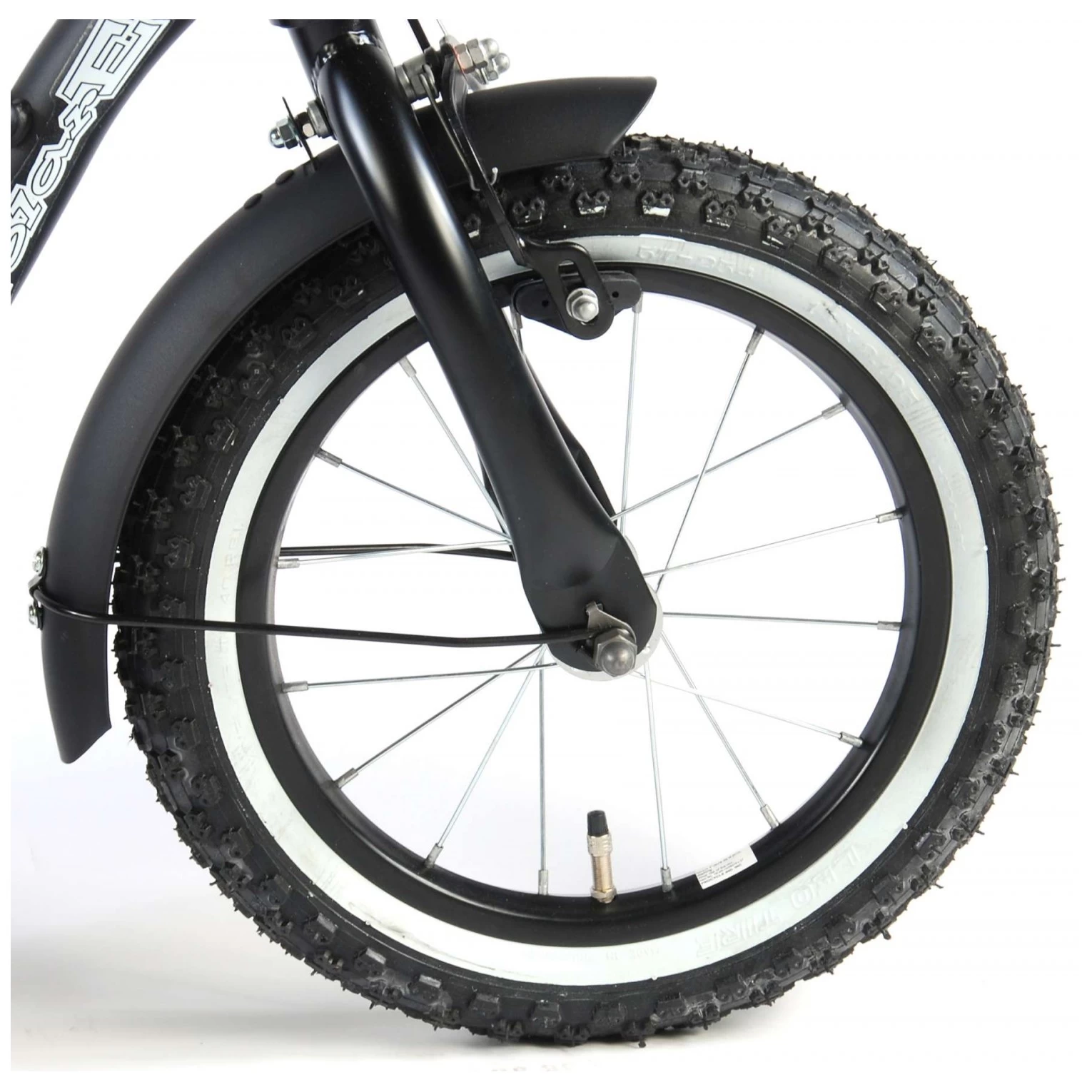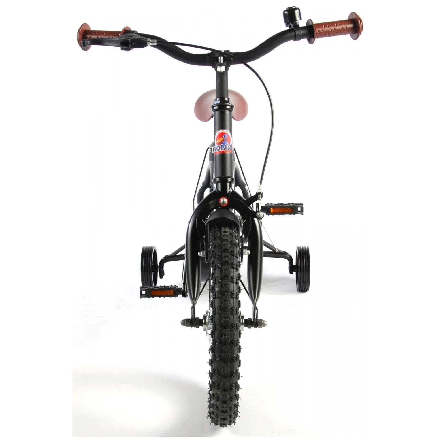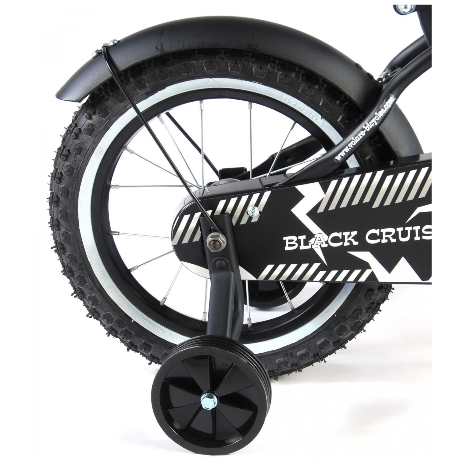 Volare Black Cruiser 14 inch kinderfiets. De Volare Black Cruiser is in mat zwart. In Amerika fietsen de stoere jongens langs de “Beach”. Dit wil natuurlijk elke stoere jongen, ook al is hij 3,5 jaar. Met stevige zijwieltjes om snel te kunnen leren fietsen. Topper! Deze fiets is voor 95% afgemonteerd, dus bijna fietsklaar. Wel zo gemakkelijk!