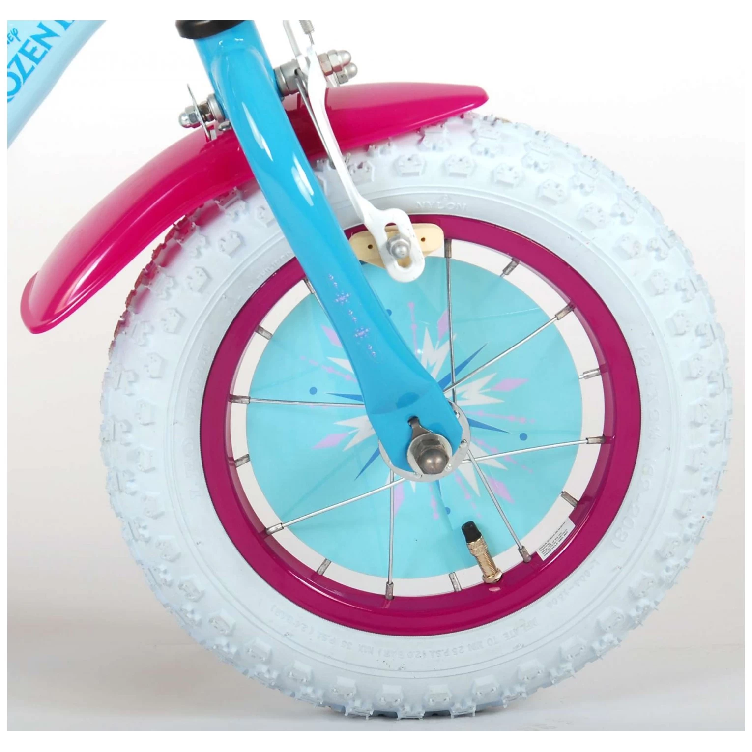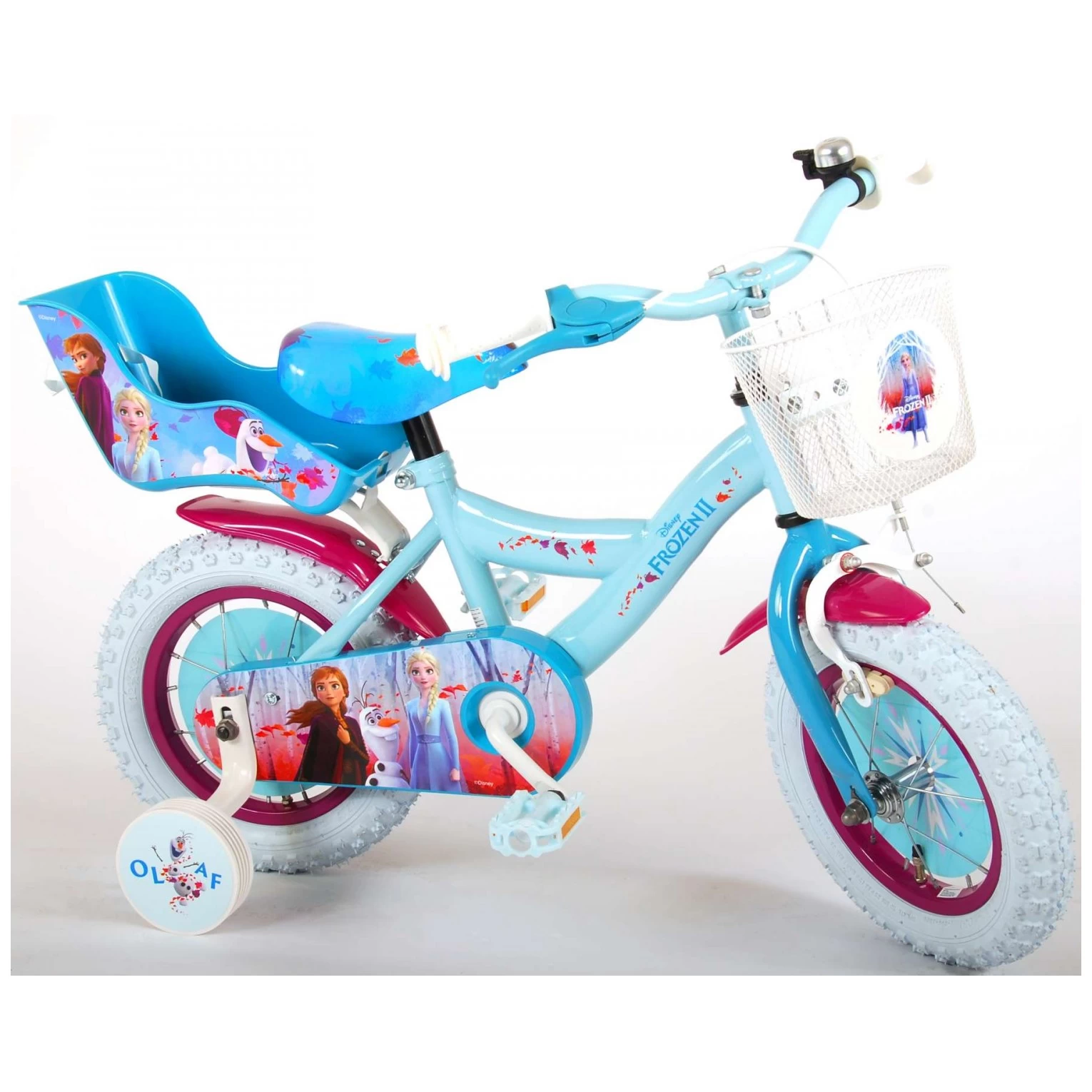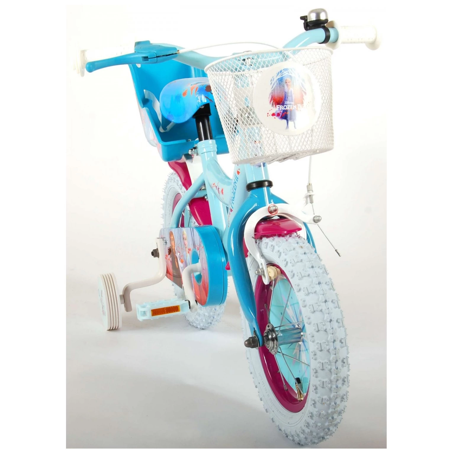 Disney Frozen 2 kinderfiets 12 inch. De Disney Frozen film is onder alle meisjes super populair. Volare heeft nu ook een hele mooie Disney Frozen 2 meisjesfiets-lijn gemaakt. In prachtige kleurstelling zacht blauw met poppenzitje achter, mandje voor. Sterk staal frame met metalen velgen en frisse witte bandjes. Dichte kettingkast met prachtig Frozen design. Welk meisje wil deze fiets nu niet? Strong Heart – Strong Bond. Deze fiets is voor 95% afgemonteerd, dus bijna fietsklaar. Wel zo gemakkelijk! Official Licensed Disney Product