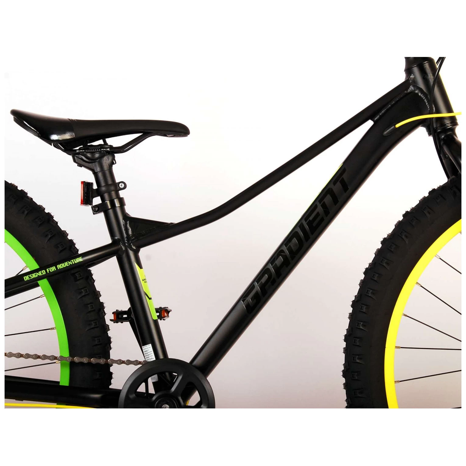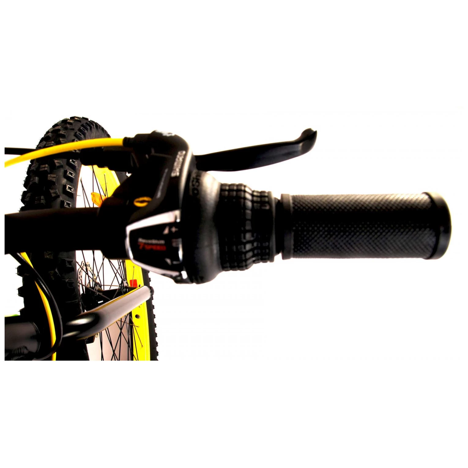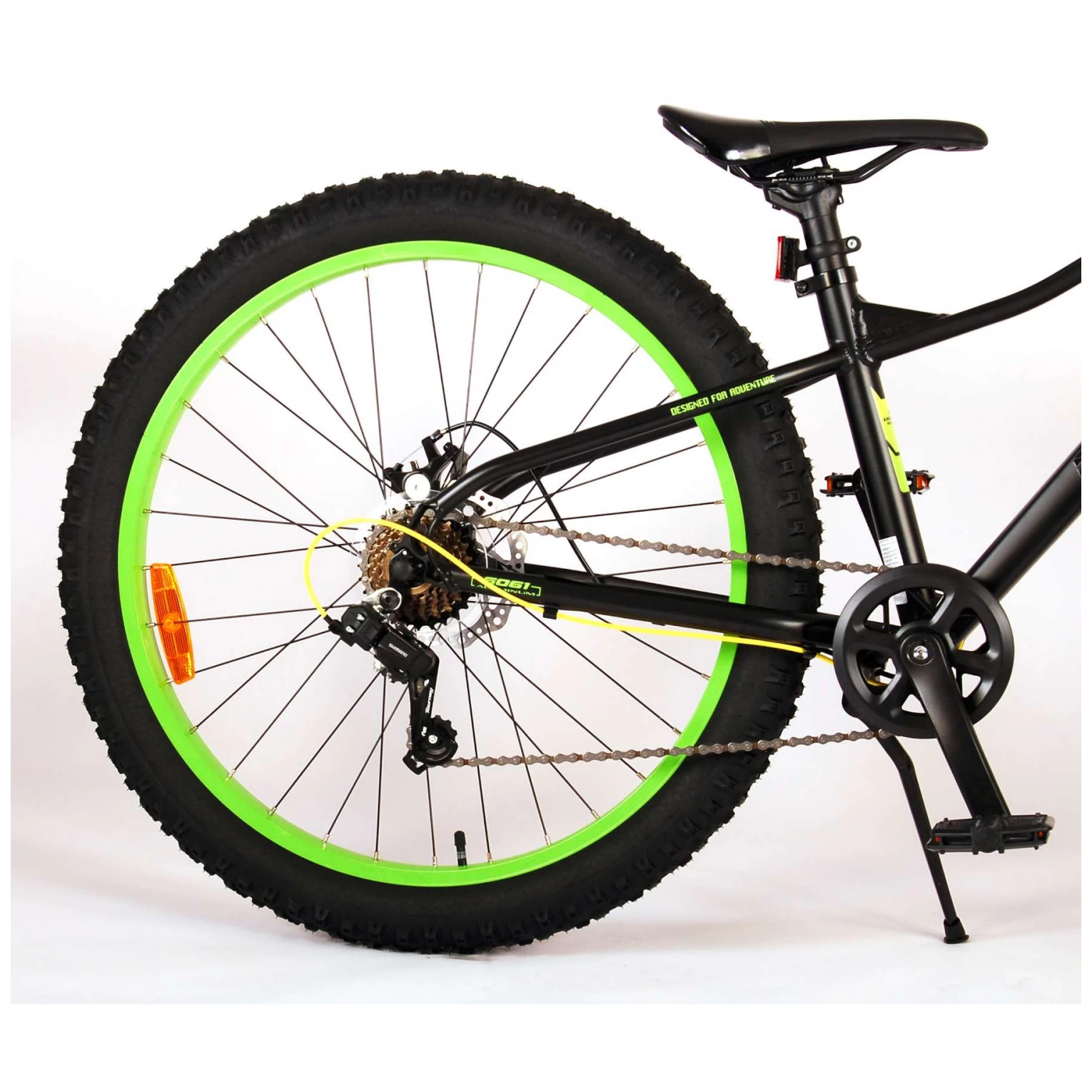 Volare Gradient 26 inch kinderfiets 7 speed. De Volare Gradient kinderfietsrange is van superieure kwaliteit. Het frame van deze fiets is gemaakt van ultra licht aluminium. Ook onderdelen zoals het stuur zijn uit aluminium vervaardigd. De verschillend gekleurde velgen geven het strakke design een bijzondere touch. Daarnaast heeft de fiets een aluminium smart control systeem, dat ervoor zorgt dat het stuur begrensd is (niet in hoogte verstelbaar) en om snelheid te verminderen heeft de fiets twee luxe schijfremmen/handremmen en heeft dus géén terugtraprem. Bovendien heeft de fiets 7 versnellingen. De handvaten zijn van Kraton, een heerlijk zacht rubber, waardoor deze lekkerder in de hand liggen en extra comfort bieden. Voor de veiligheid heeft de fiets reflectoren aan de voor- en achterkant en met de fietsbel kun je laten weten dat je de hoek om komt. Met het sterke aluminium standaard kun je je fiets gemakkelijk neerzetten. De 26 inch luchtbanden maken dat deze fiets geschikt is voor jongens tussen de 9 en 12 jaar oud met kledingmaat 140-152.