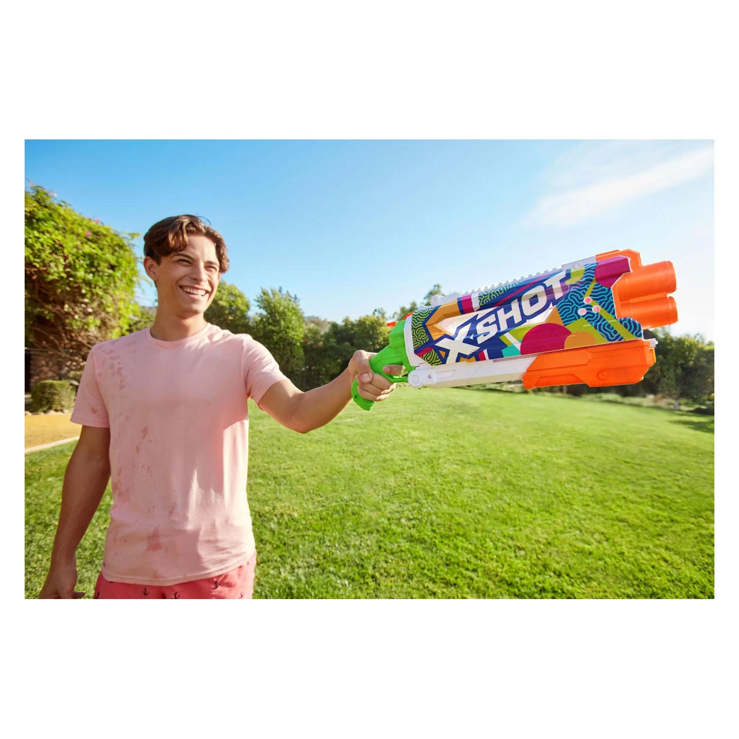 Own deze zomer met het nieuwe X-Shot Water Fast Fill Skins Pump Action Waterpistool! X-Shot Fast-Fill stelt je in staat om je blaster in slechts 1 seconde bij te vullen en terug te keren naar de waterblaster-actie lang voordat je tegenstanders klaar zijn met vullen. Gewoon onderdompelen, vullen en sluiten met snelle afdichtingstechnologie. Het waterpistool schiet tot 10 meter met zijn 500 ml watertank!